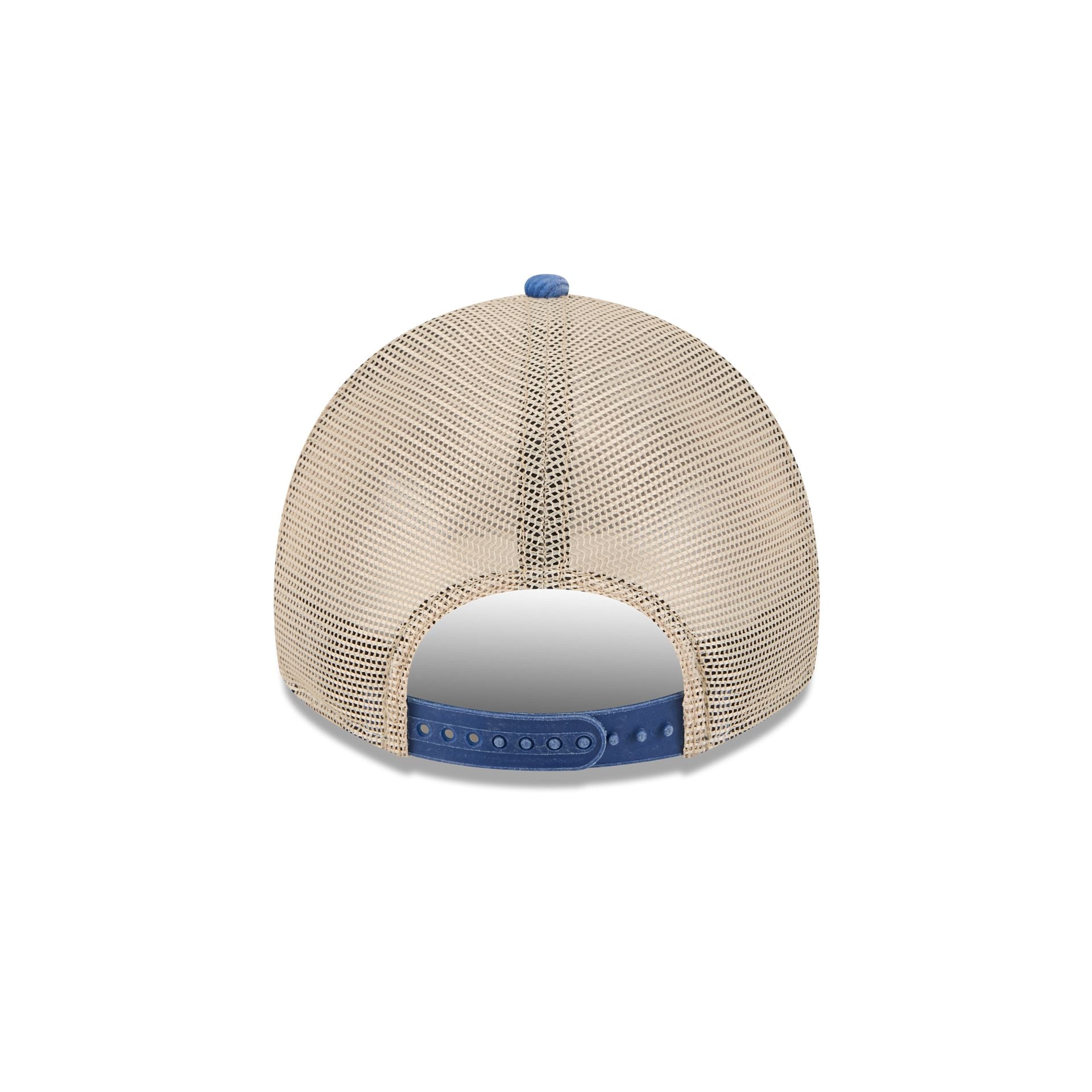 The New York Giants Vintage Landscape 9TWENTY A-Frame Trucker features an embroidered Giants Vintage Landscape patch at the front panels with a team logo at the right-wear side. Additional details include an adjustable snapback closure at the rear and a gray undervisor.