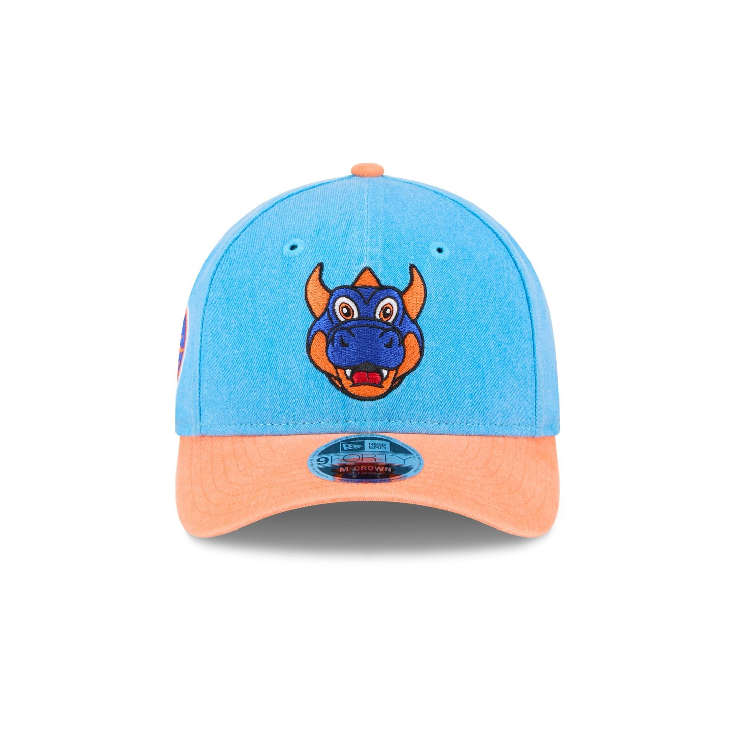 The New York Islanders Mascot 9FORTY M-Crown Snapback features an embroidered Islanders logo at the front panels with a team logo at the right-wear side. Additional details include the mascot's name above an adjustable snapback closure at the rear and a gray undervisor.