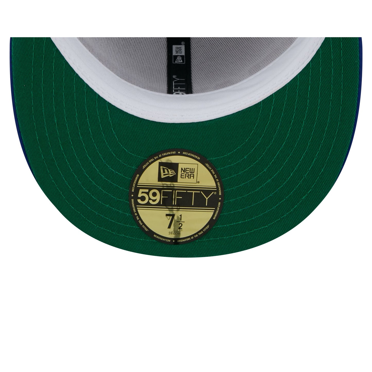 The New York Islanders Spring Satin 59FIFTY Fitted Cap features an embroidered Islanders wordmark at the front panels with a New Era pin at the top left panel and an NHL Shield logo at the rear. Additional details include a satin fabrication throughout, a logo at the right-wear side, and a green undervisor.