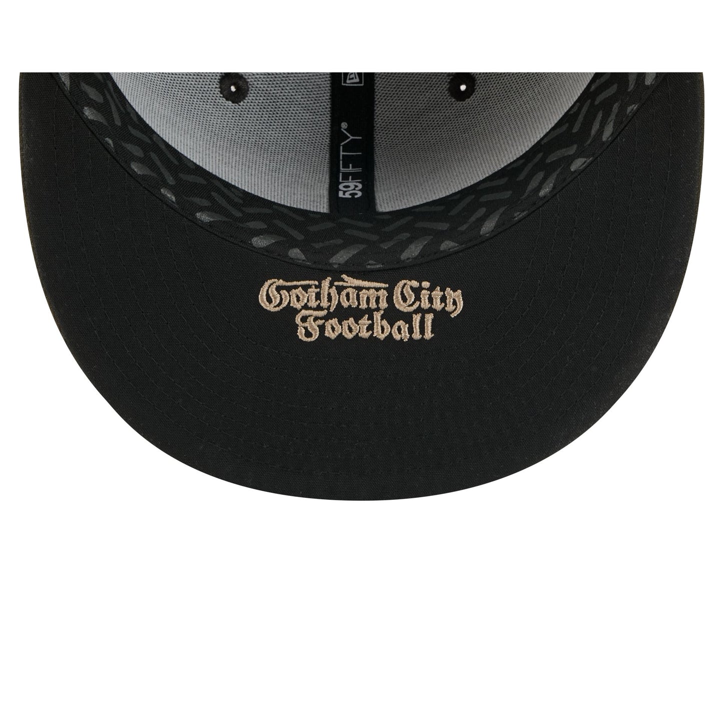 Inspired by their original team name, the Gotham City Football Club, textures pull in the team's roots. The New York Jets 2025 NFL Rivalries 59FIFTY Fitted Cap features an embroidered Jets Rivalries logo at the front panels with a rope at the visor. Additional details include a team patch at the right-wear side and the NFL Shield logo at the rear.