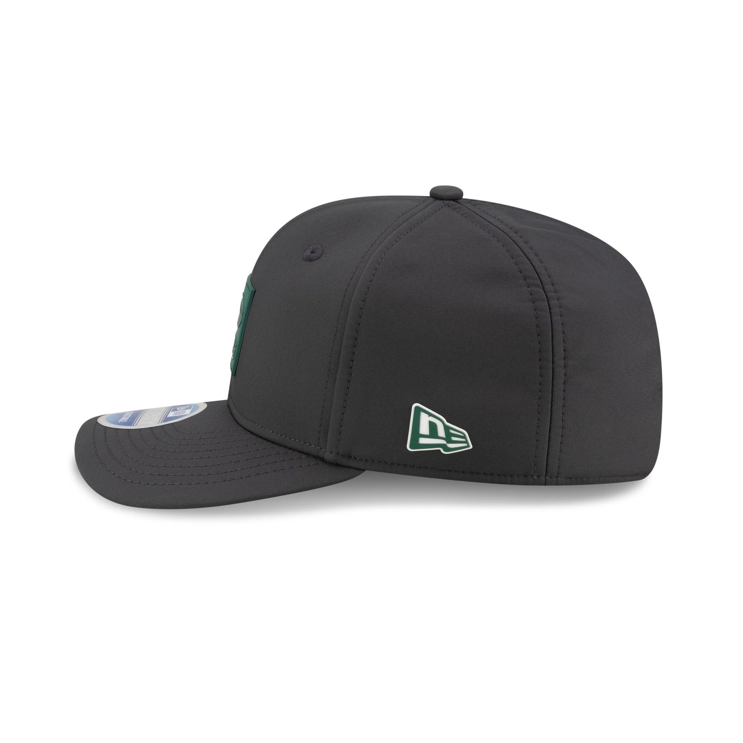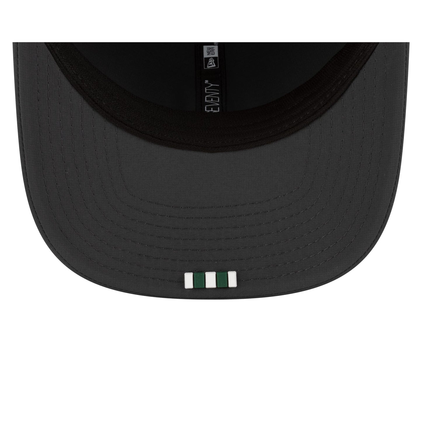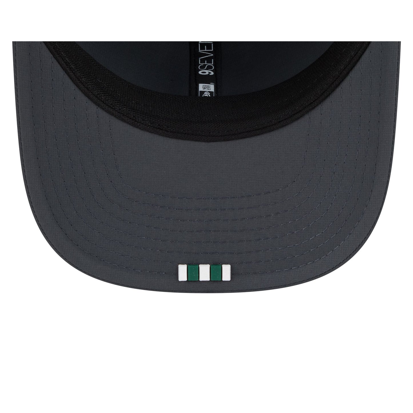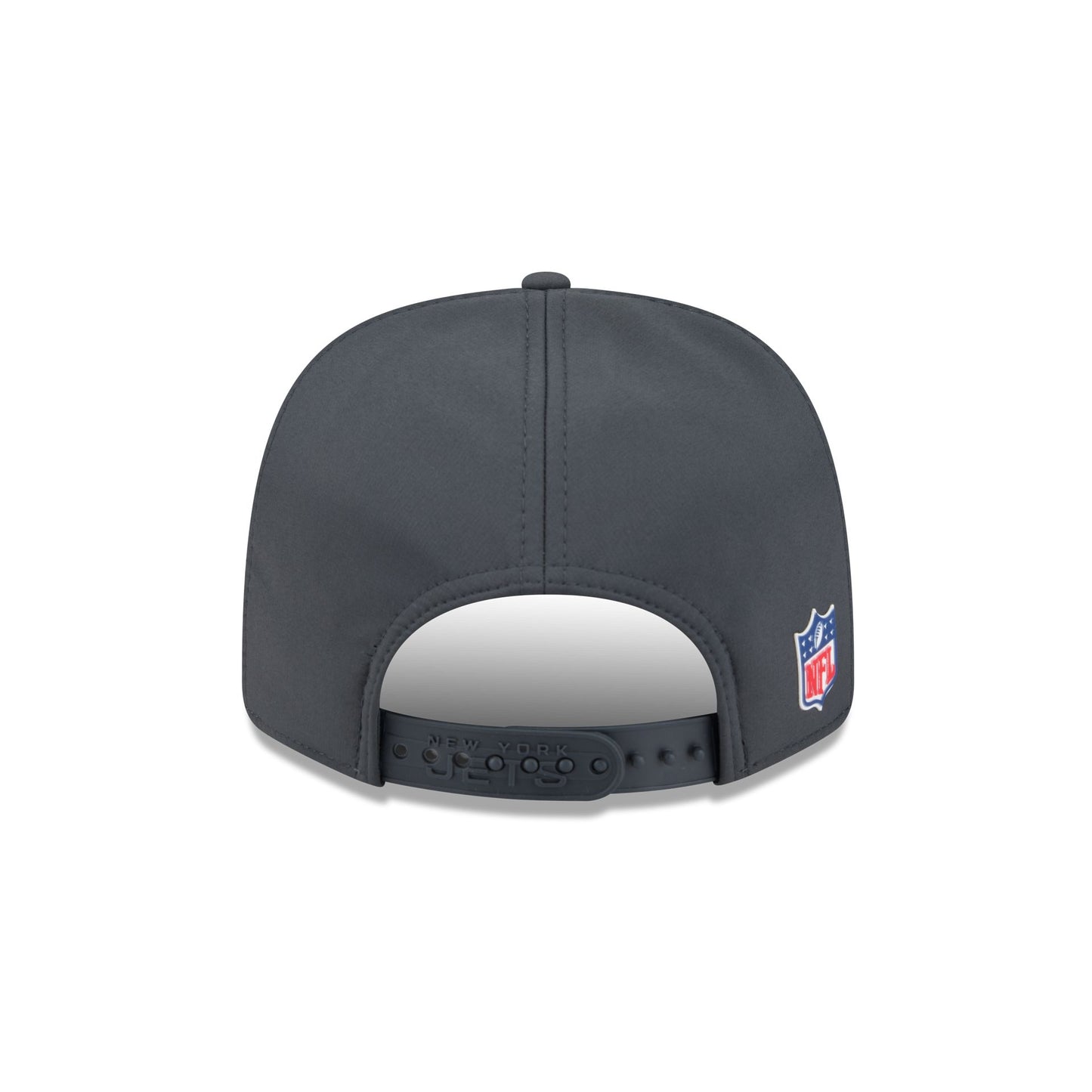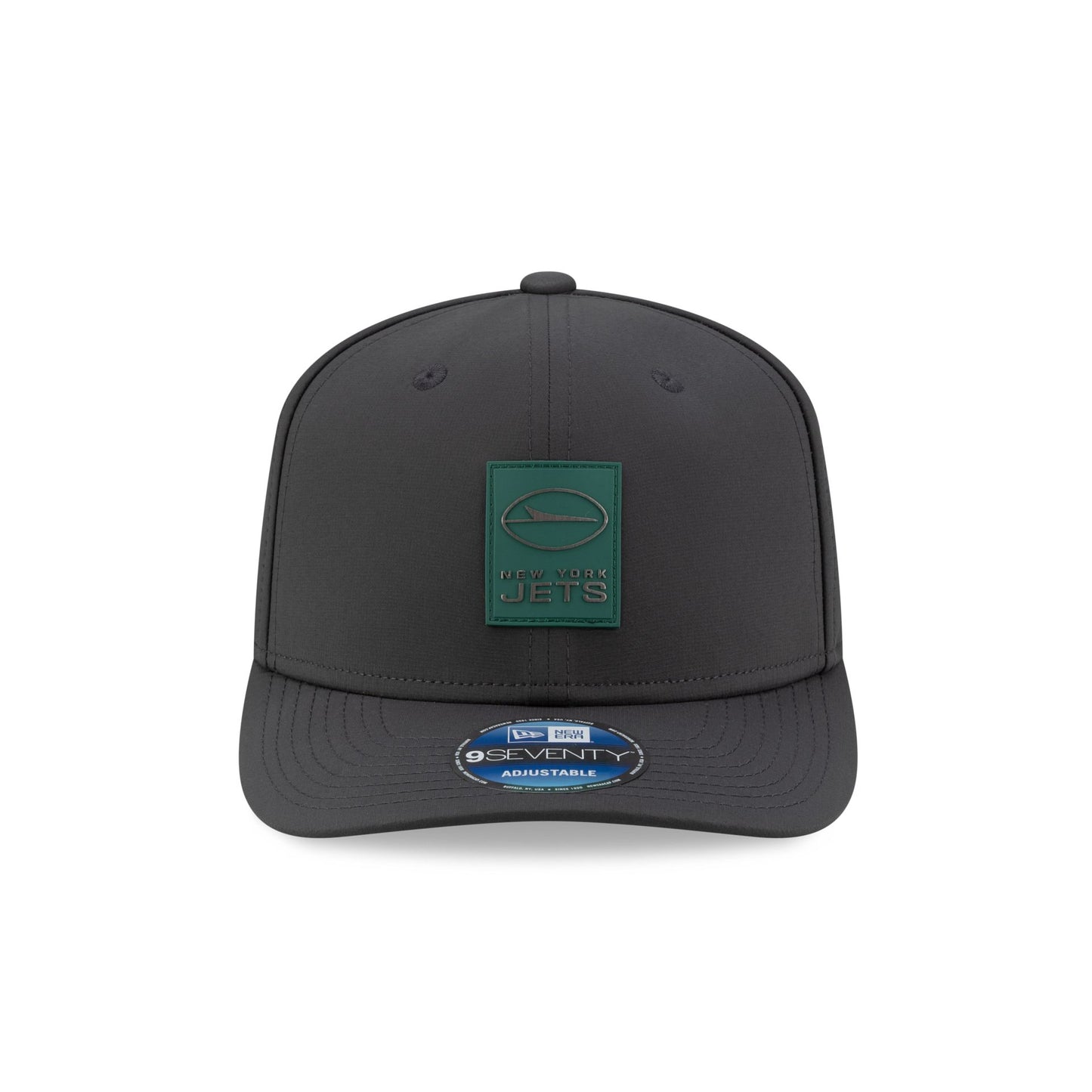 The New York Jets 2025 Sideline Cold Weather Steel Clouds 9SEVENTY Stretch-Snap features a sewn-down silicone Jets logo patch at the front panels with a water-repellent quill tech fabrication throughout and an insulated crown with a quick-dry cushioned sweatband. Additional details include the Official NFL Shield logo to the right of a soft silicone snapback closure at the rear. The undervisor is accented with a silicone transfer in the team’s colors.