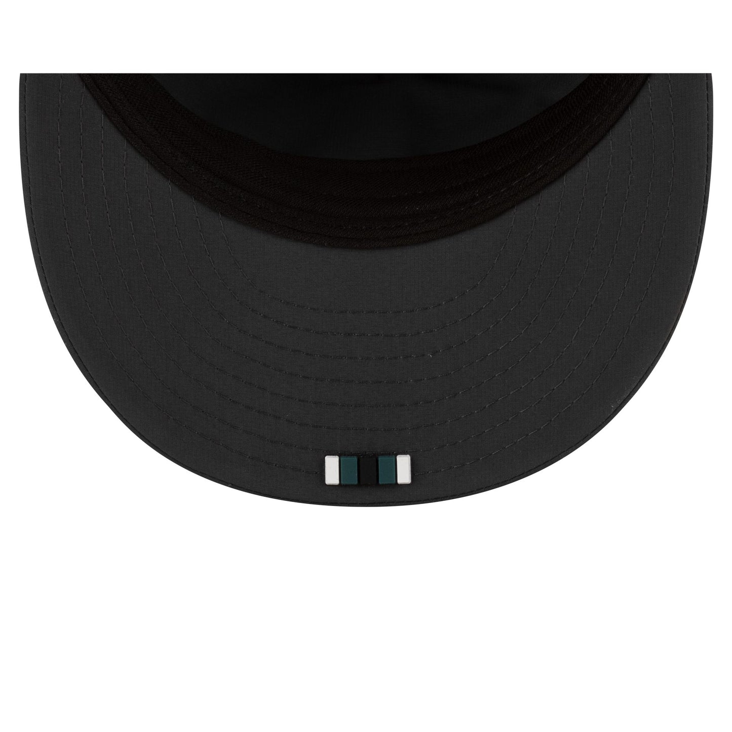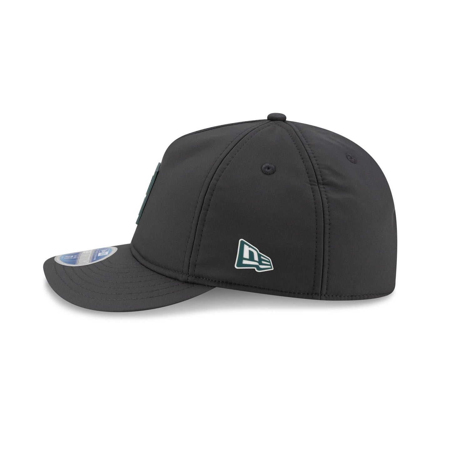 The New York Jets 2025 Sideline Cold Weather Steel Clouds Retro Crown 59FIFTY A-Frame Fitted Cap features a sewn-down silicone Jets logo patch at the front panels with the Official NFL Shield logo at the rear. The cap has a water-repellent quill tech fabrication throughout, with an insulated crown and quick-dry cushioned sweatband. The undervisor is accented with a silicone transfer in the team’s colors.