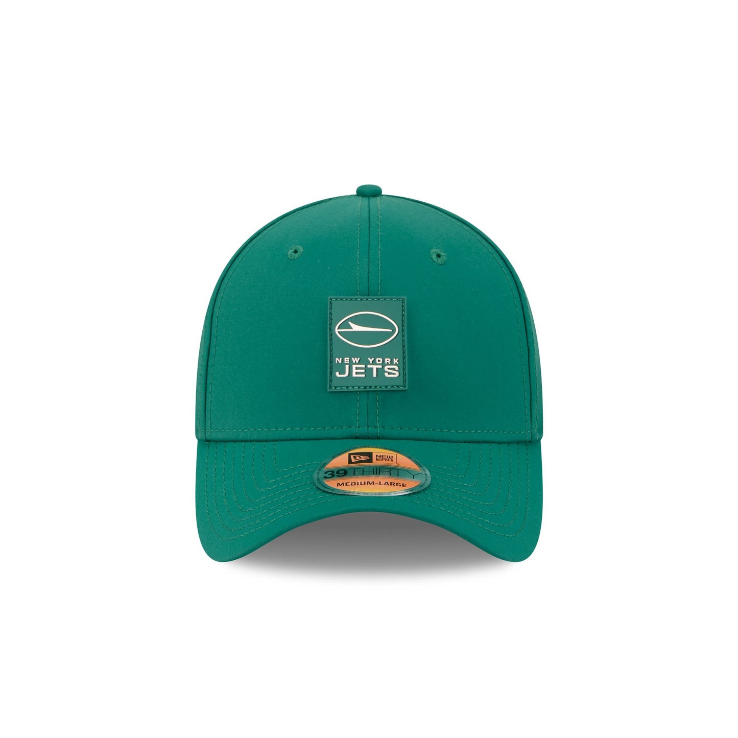 The New York Jets 2025 Sideline Hot Weather 39THIRTY Stretch Fit Cap features a sewn-down silicone Jets logo patch at the front panels with the Official NFL Shield logo at the rear. The cap has a water-repellent quill tech fabrication throughout, with an insulated crown and quick-dry cushioned sweatband. The undervisor is accented with a silicone transfer in the team’s colors.