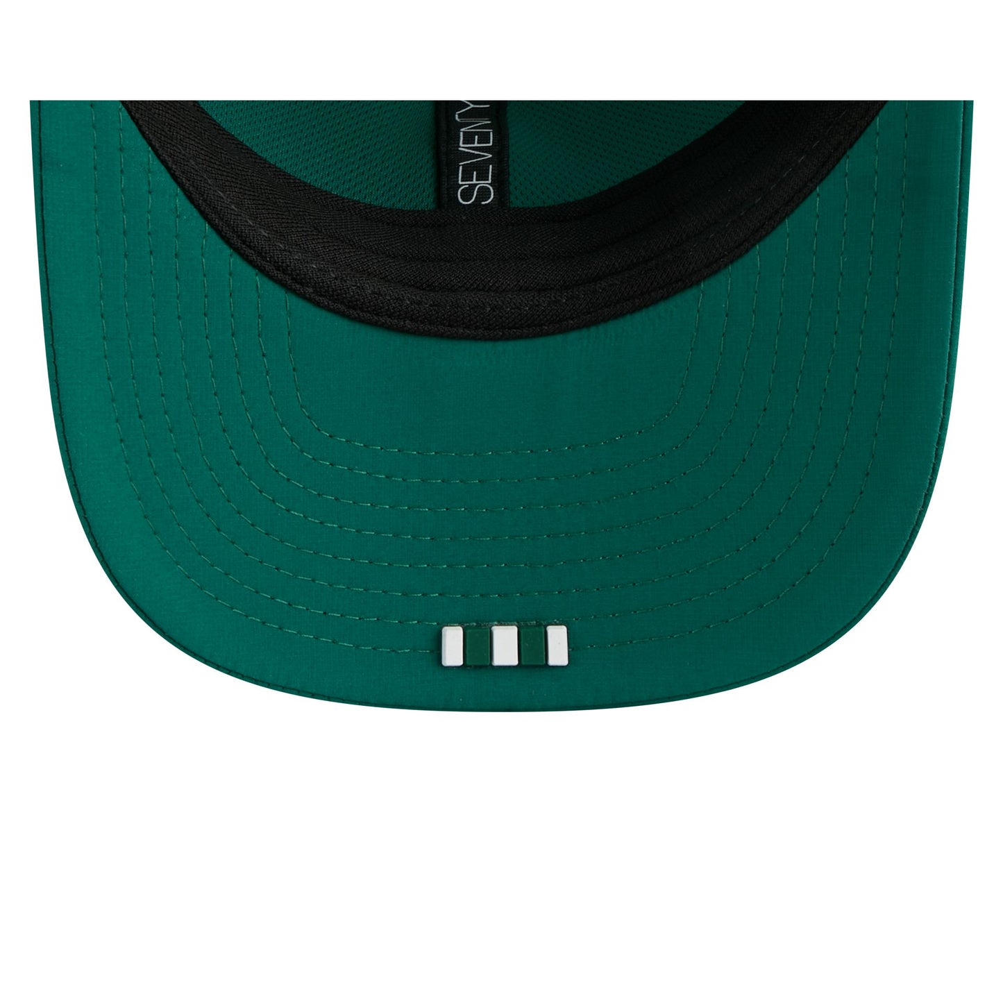 The New York Jets 2025 Sideline Hot Weather 9SEVENTY Trucker features a sewn-down silicone Jets logo patch at the front panels with a water-repellent quill tech fabrication throughout and a quick-dry cushioned sweatband to absorb moisture. Additional details include the Official NFL Shield logo to the right of a soft silicone snapback closure at a light-weight mesh rear. The undervisor is accented with a silicone transfer in the team’s colors.