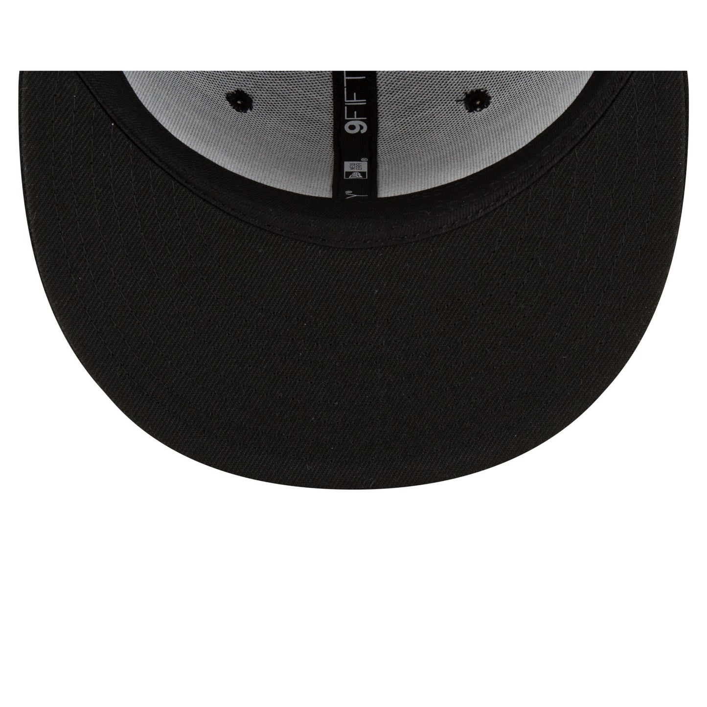 The New York Jets Black & White 9FIFTY Snapback features an embroidered Jets logo at the front panels with an adjustable snapback closure at the rear.