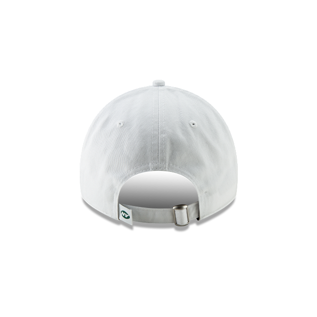 The New York Jets Core Classic 9TWENTY Adjustable Cap features an embroidered Jets logo at the front panels with a woven tab displaying the team logo on a D-Ring closure at the rear.