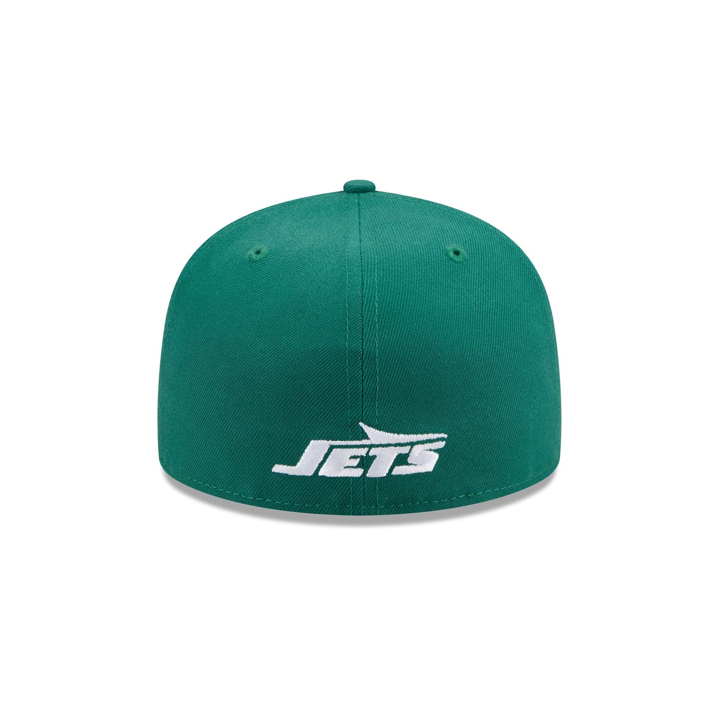 The New York Jets Deceptor 59FIFTY Fitted Cap features an embroidered Jets deceptive logo at the front panels with a team logo at the right-wear side. Additional details include a wordmark at the rear, and a gray undervisor.