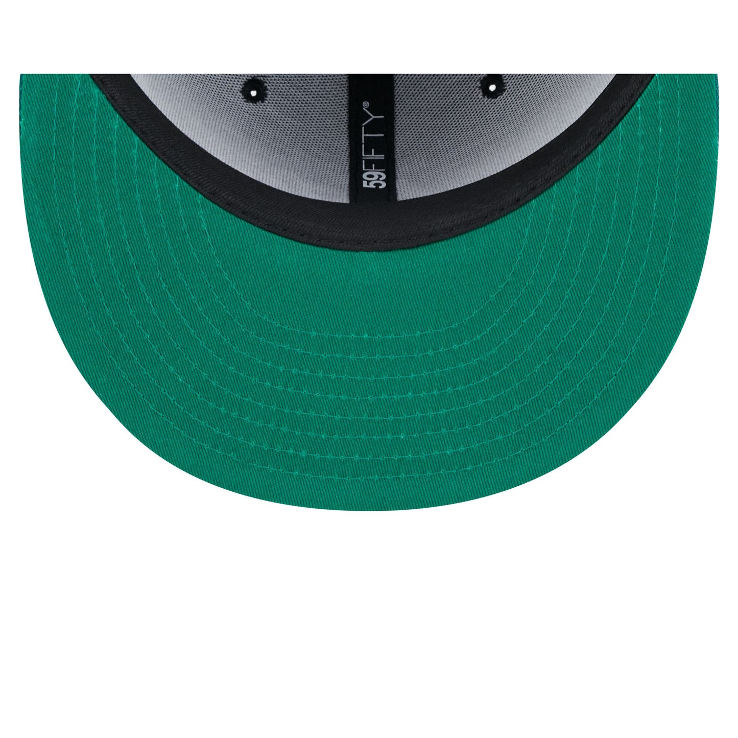 The New York Jets Faux Leather Crown 59FIFTY Fitted Cap features an embroidered Jets wordmark at the front panels with a matching NFL Shield at the rear, a green visor, and green undervisor.