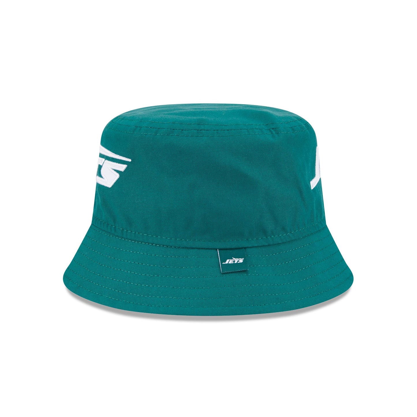 The New York Jets Kids Helmet Bucket Hat features an embroidered team helmet design throughout the hat with a team tag at the rear.