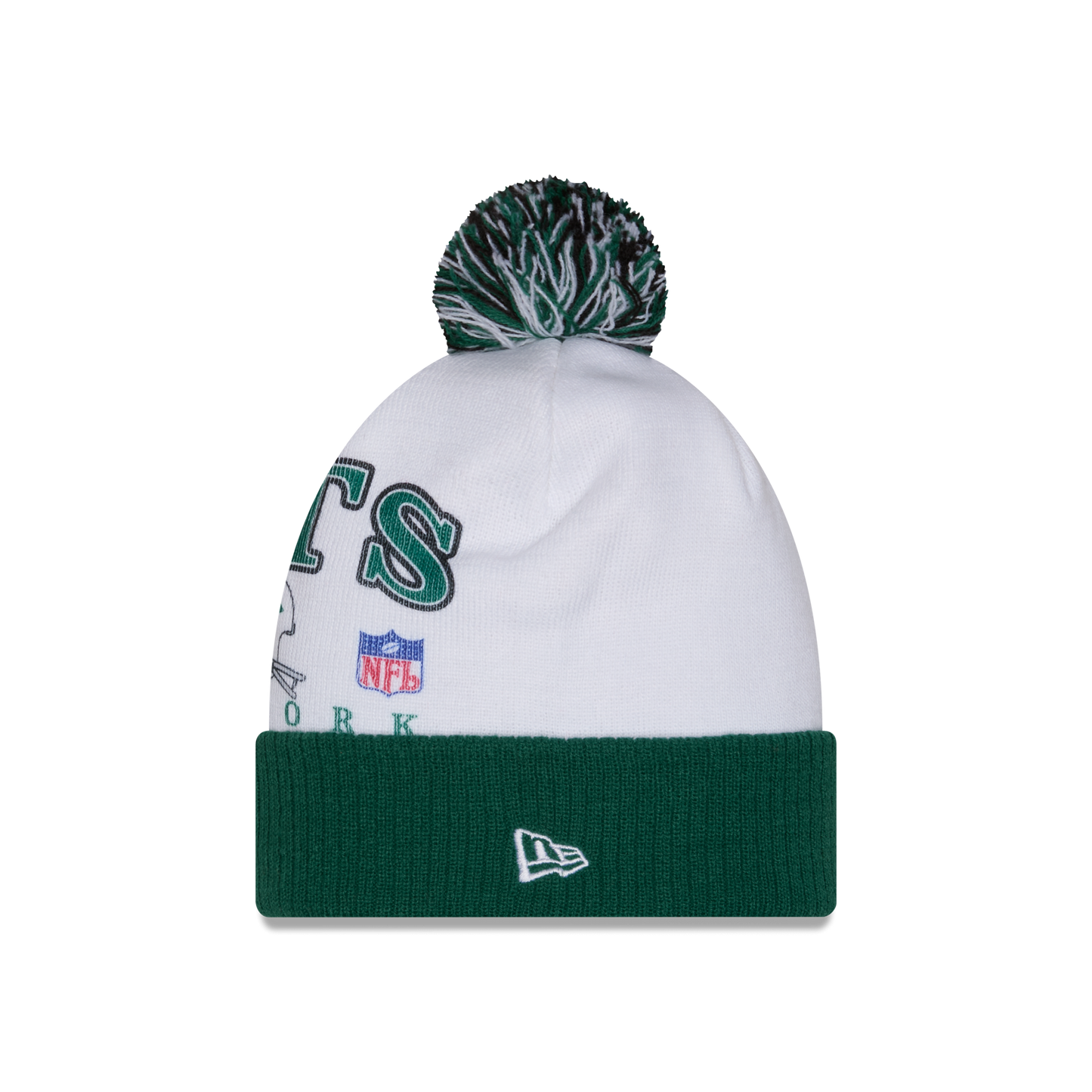 The New York Jets Spirit Pom Knit features a screen-printed Jets Historic graphic at the crown with a one-time removable pom.