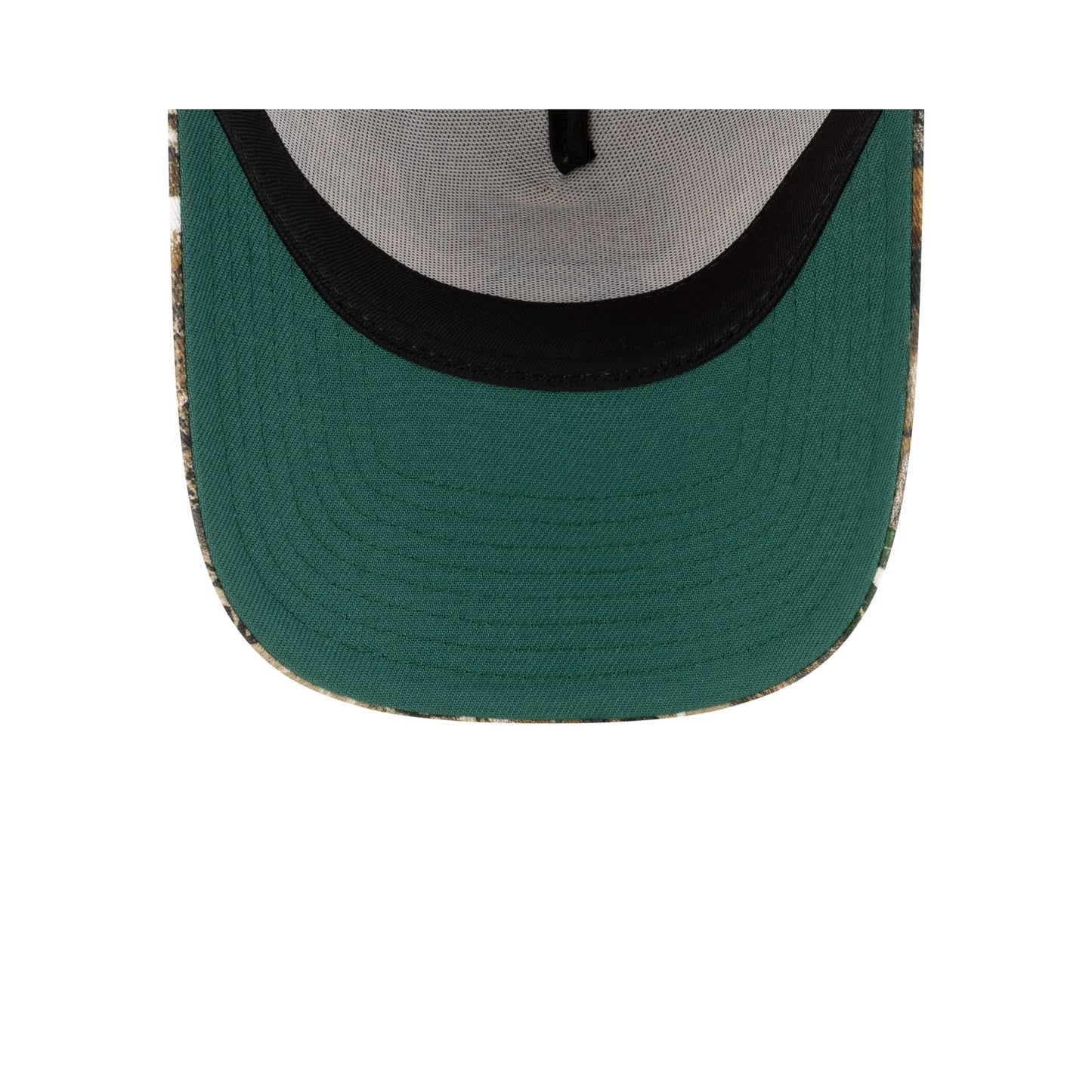 The New York Knicks 1964-1992 Hardwood Classics Realtree 9FORTY A-Frame Snapback Cap features an embroidered Knicks 1964-1992 Hardwood Classics logo at the front panels with a banner patch at the right-wear side. Additional details include a Realtree camo pattern throughout, an adjustable snapback closure at the rear, and a green undervisor.