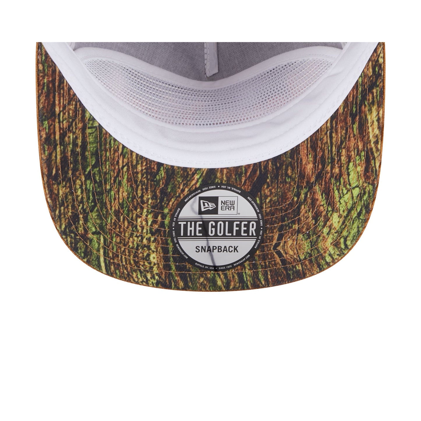 The New York Knicks 2025 All-Star Game Fan Pack Corduroy Golfer features an embroidered Knicks script wordmark and sneaker pin at the front panels against a corduroy fabrication. Additional details include a rope at the visor, a team tag on a snapback closure at the rear, and a camo undervisor.