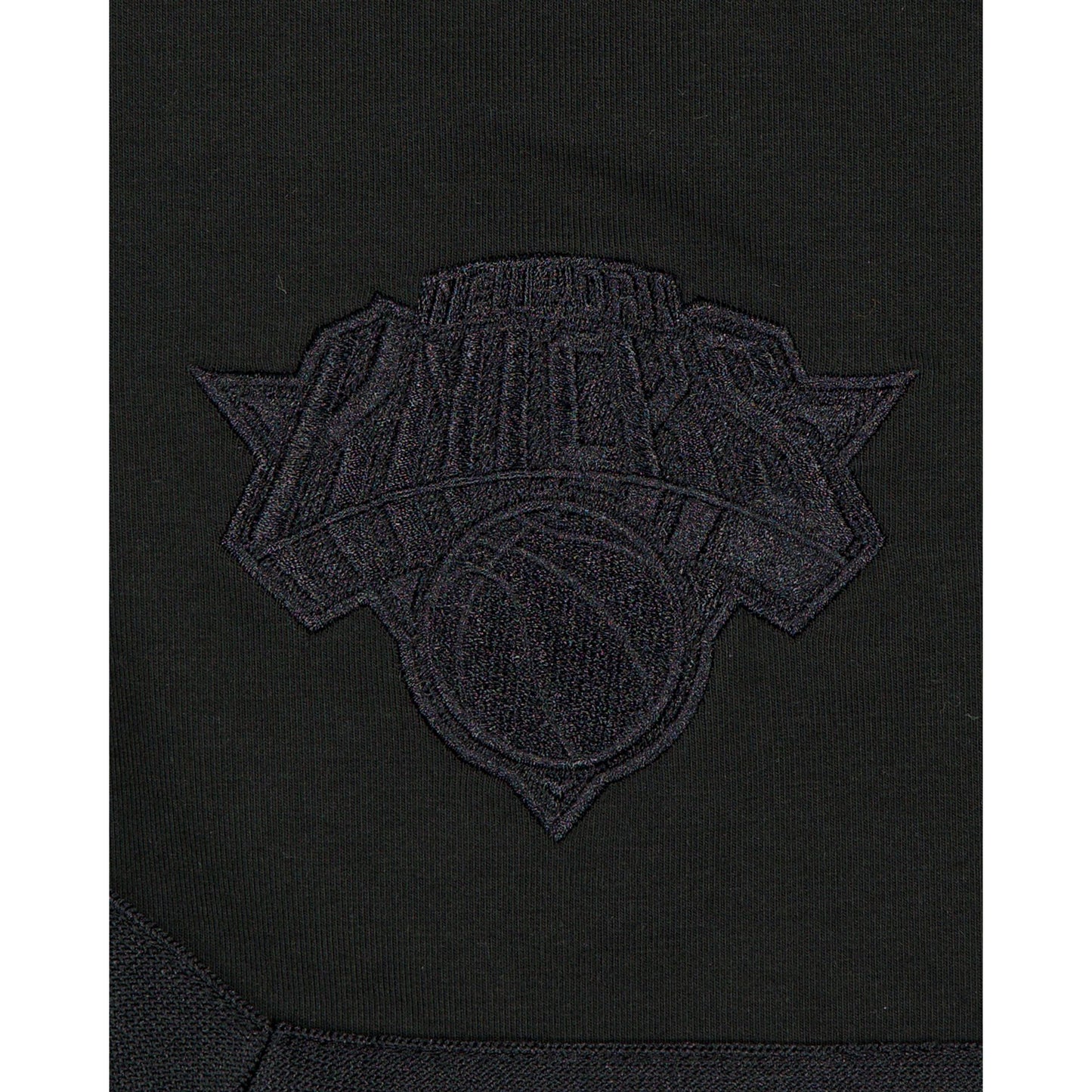 The New York Knicks Black on Black Logo Select Shorts features an embroidered Knicks logo at the right-wear leg and a satin applique with a tonal stitch team wordmark at the rear left leg.