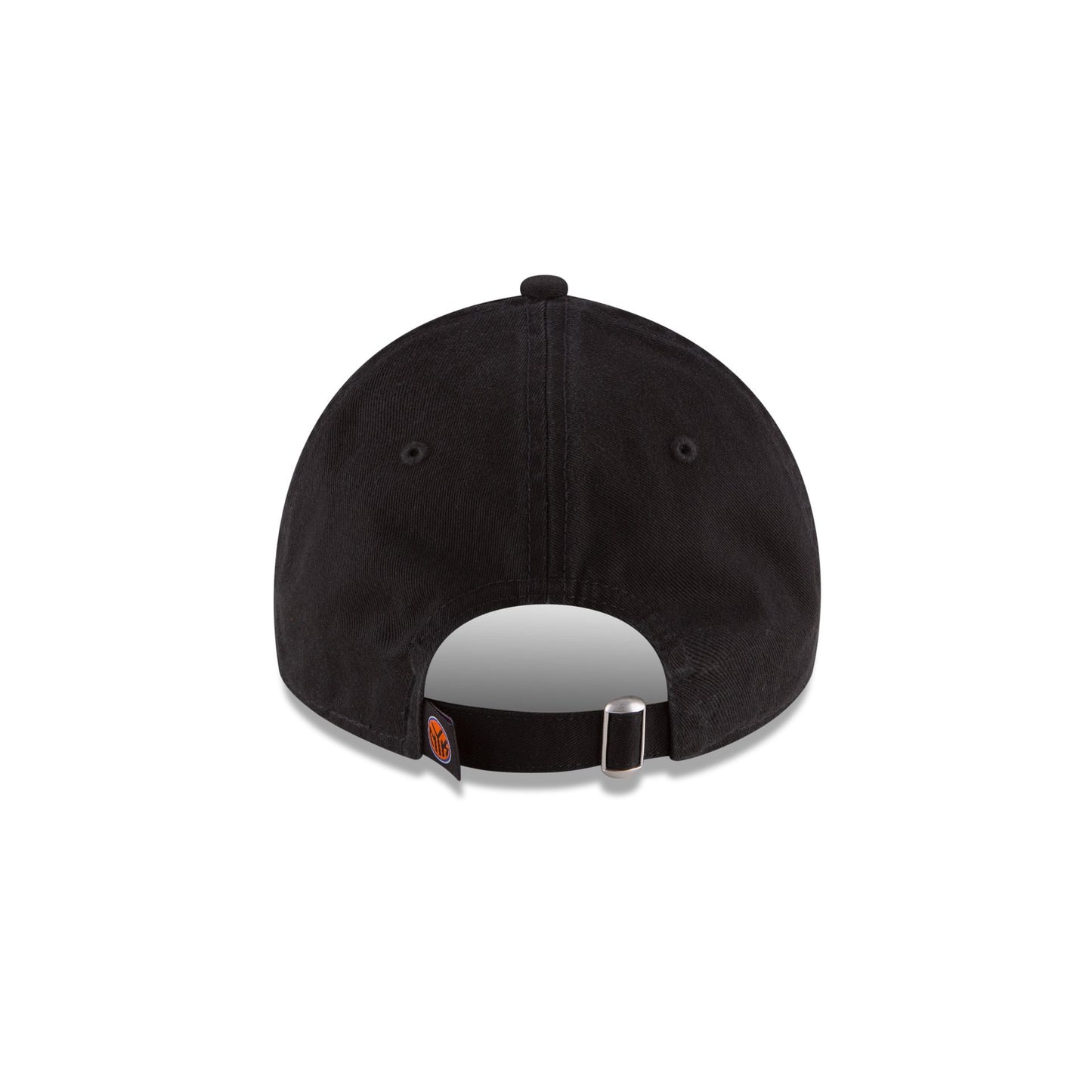 The New York Knicks Core Classic 9TWENTY Adjustable Cap features an embroidered Knicks logo at the front panels with a woven tab displaying the team logo on a D-Ring closure at the rear.