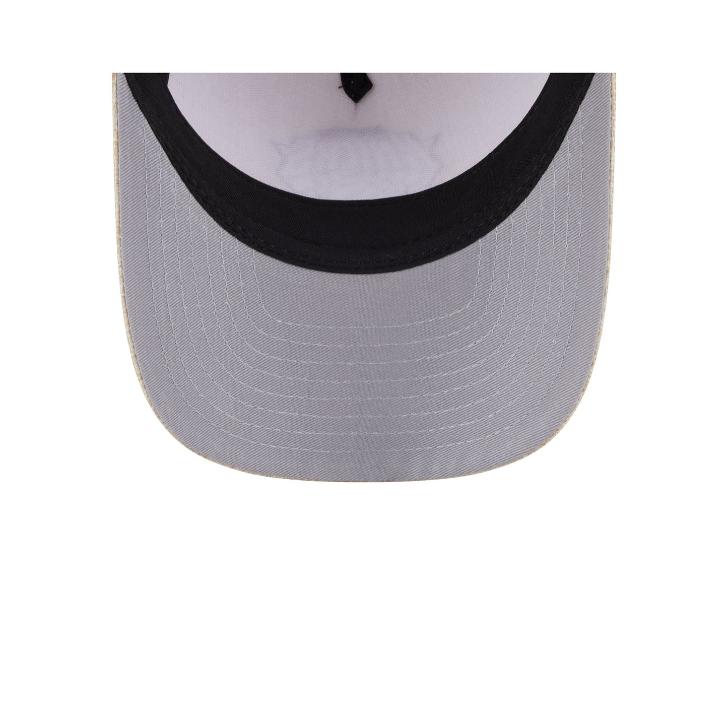 The New York Knicks Cotton Weave Stone 9FORTY M-Crown A-Frame Snapback features an embroidered Knicks logo at the front panels with an adjustable snapback closure at the rear and a gray undervisor.