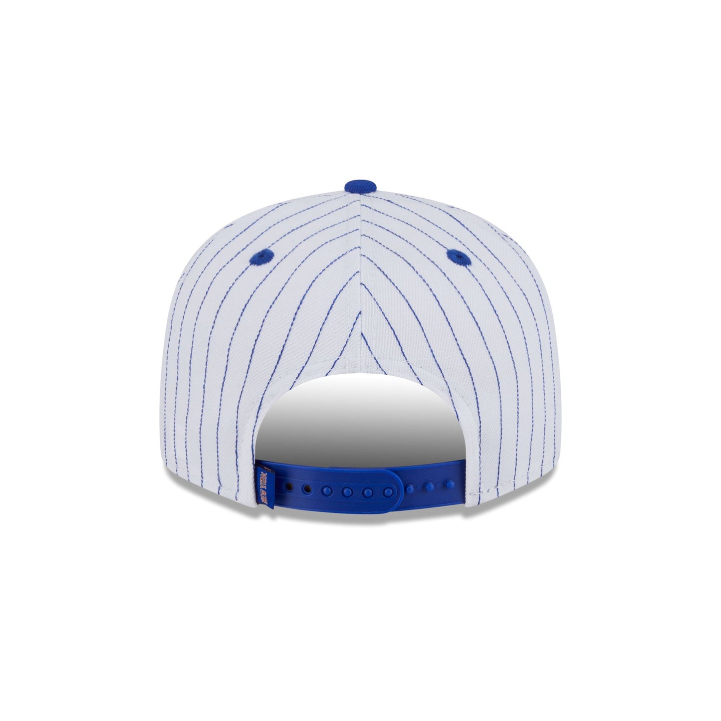 The New York Knicks Deceptor 9FIFTY Snapback features an embroidered Knicks deceptive logo at the front panels with a team logo at the right-wear side. Additional details include a snapback closure at the rear and a gray undervisor.