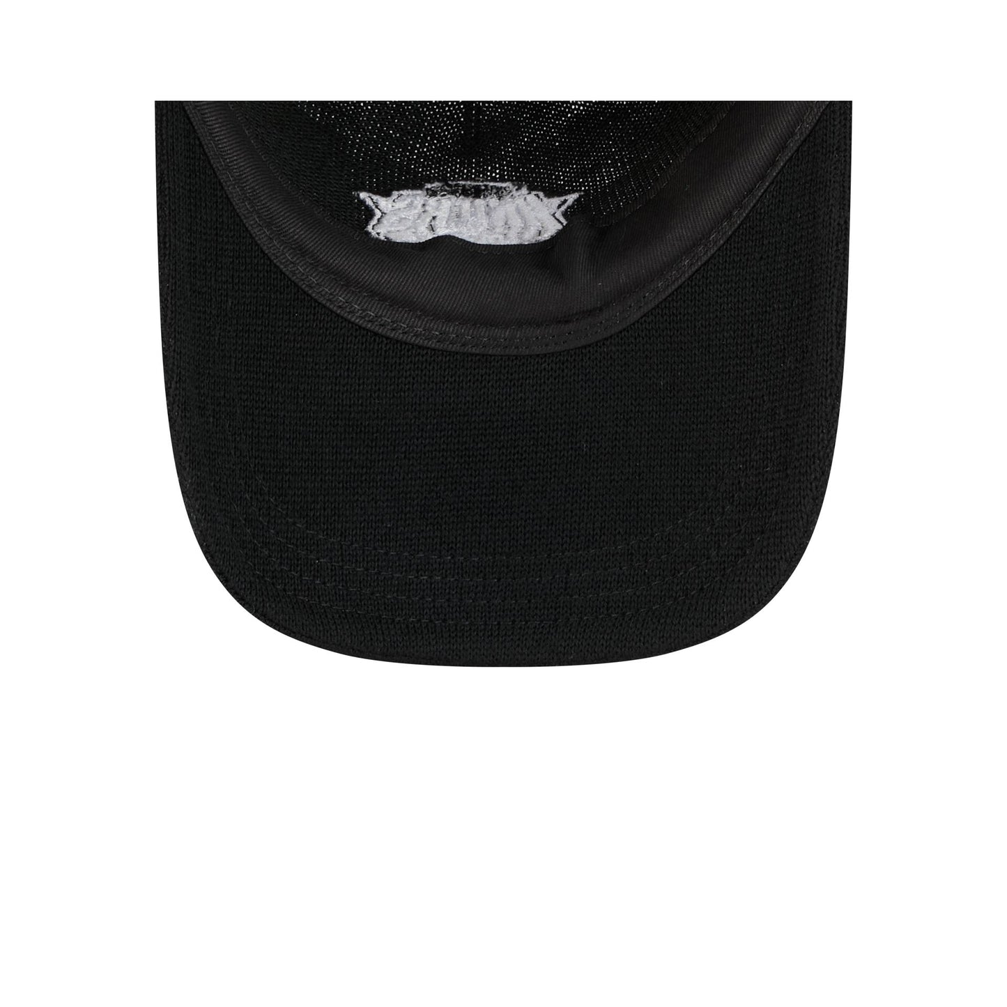 The New York Knicks Merino Wool Black 9TWENTY Adjustable Cap features an embroidered Knicks logo at the front panels with a black undervisor and an adjustable D-Ring closure at the rear.