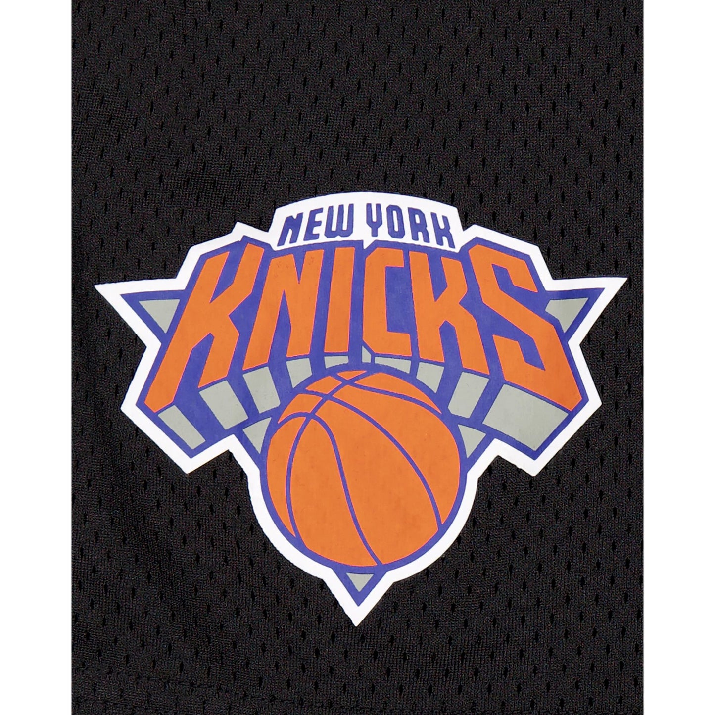 The New York Knicks Mesh Shorts features a screen-printed Knicks logo at the left leg with a team wordmark at the right leg.