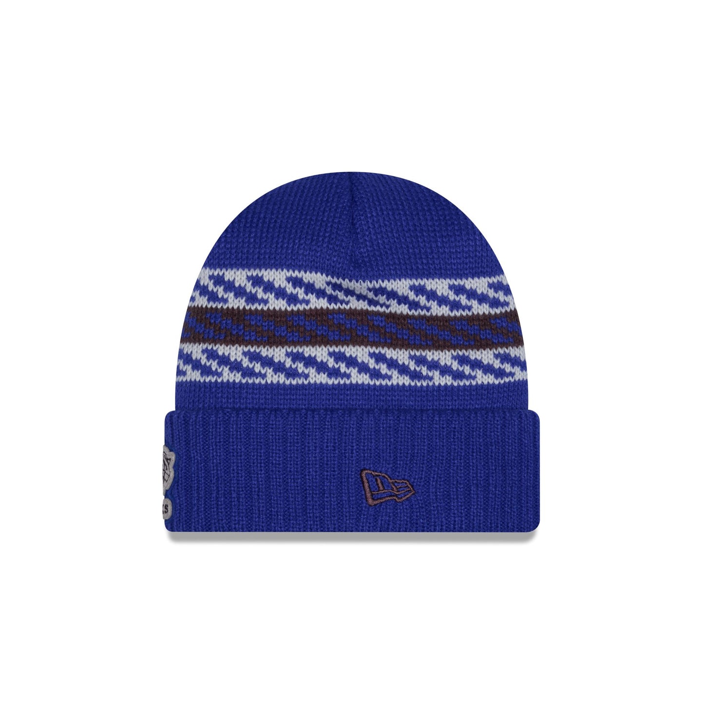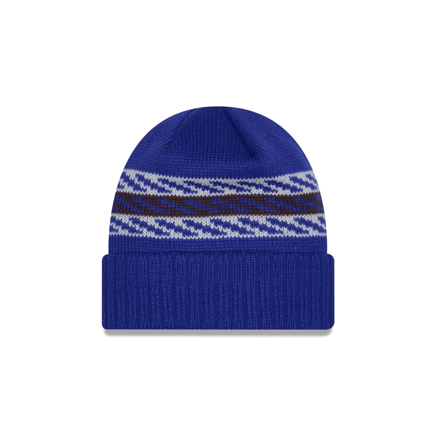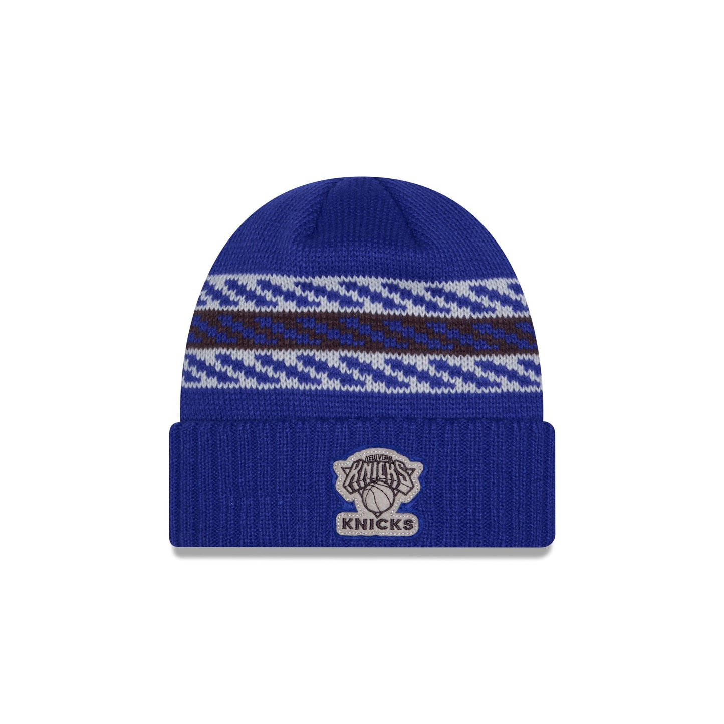 The New York Knicks Quilted Cuff Knit features a double layered felt applique Knicks patch at the front with stripe details at the crown and a New Era Flag at the left-wear side.