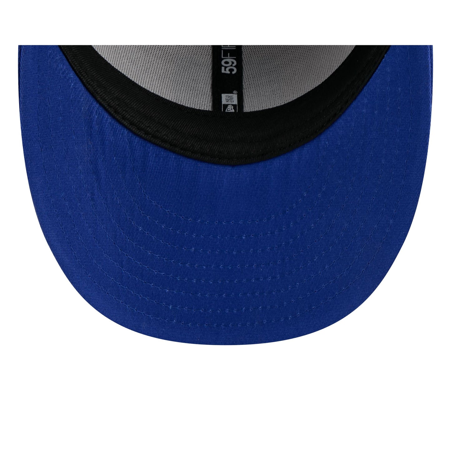 The New York Knicks Quilted Low Profile 59FIFTY Fitted Cap features a faux leather debossed applique Knicks patch at the front panels with a matching Eastern Conference team patch at the right-wear side and an embroidered NBA Logoman at the rear.