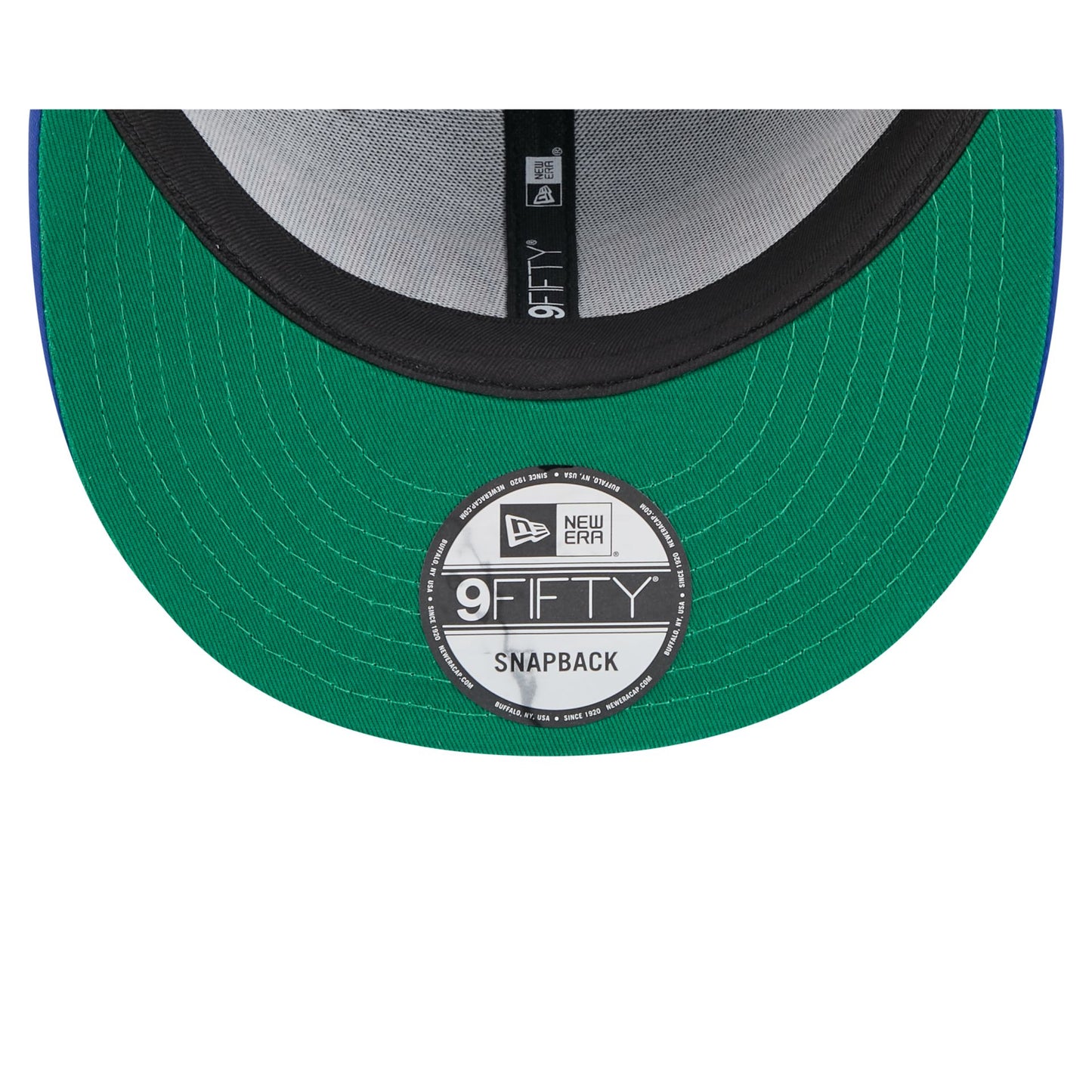 The New York Knicks Satin Pin 9FIFTY Snapback features an embroidered Knicks wordmark at the front panels against a satin fabrication throughout the cap and a logo at the right-wear side. Additional details include a New Era Pin at the front left panel a snapback closure at the rear, and a green undervisor.
