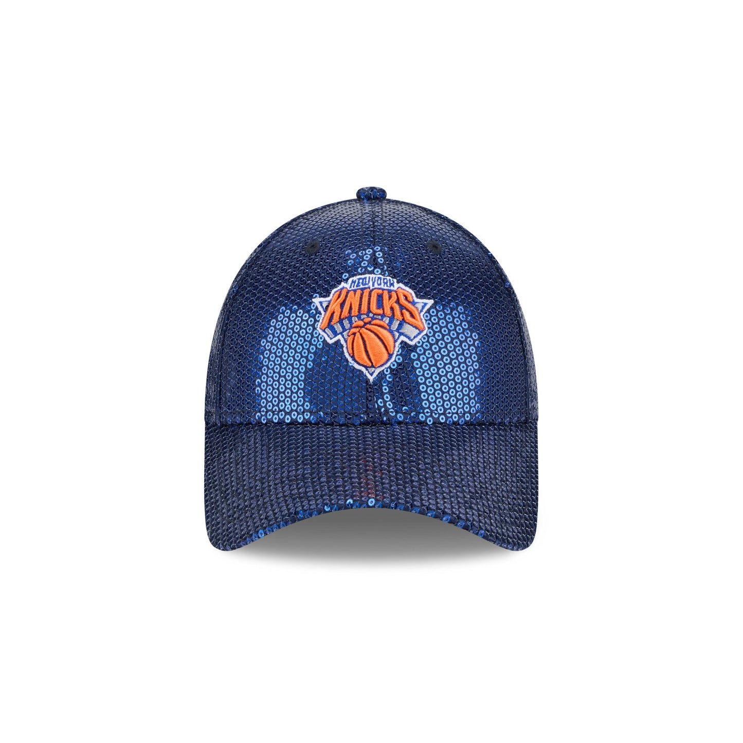 The New York Knicks Sequin Women's 9FORTY Adjustable Cap features an embroidered Knicks logo at the front panels with sequins throughout the cap and an adjustable hook-and-loop closure at the rear.