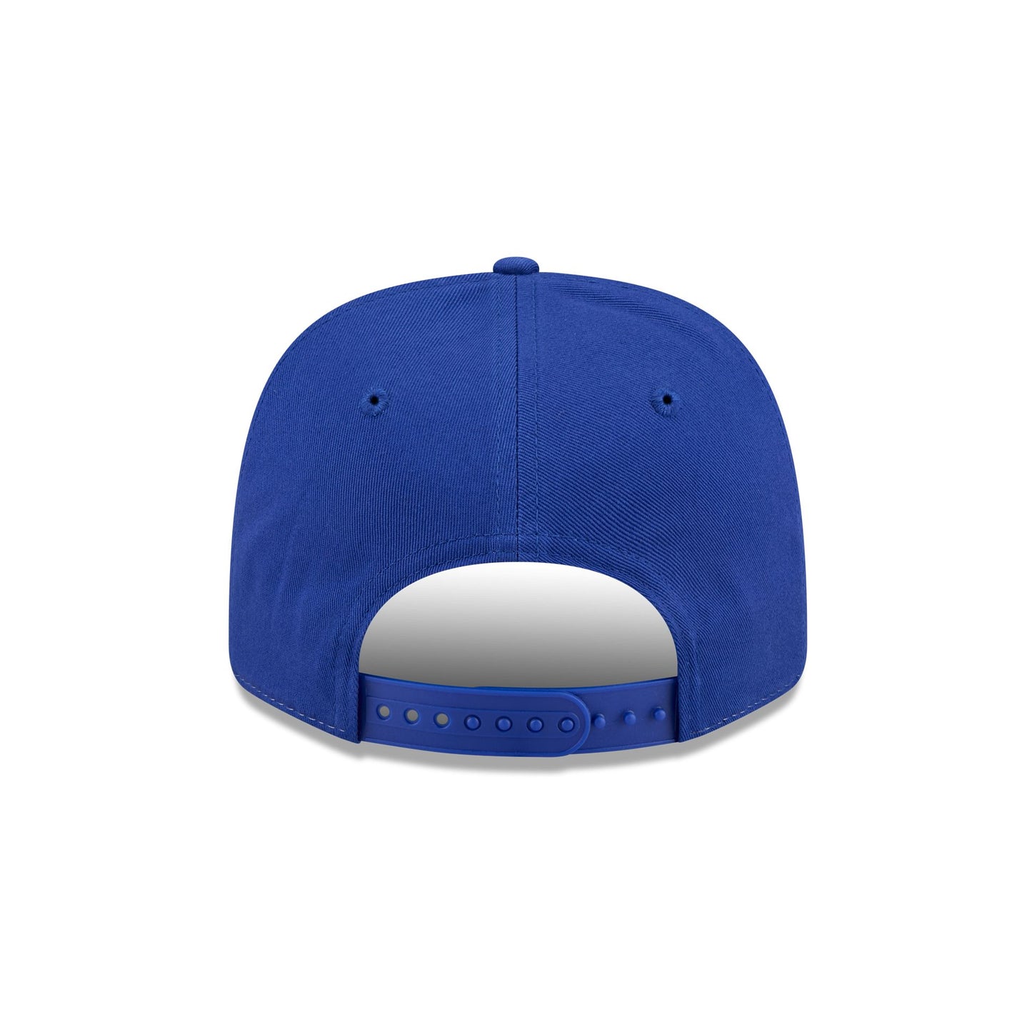 The New York Knicks Split Panel 9SEVENTY Stretch-Snap features an embroidered Knicks logo at the front panel with a split crown construction and a rope at the visor. Additional details include an adjustable stretch-snap closure at the rear and a gray undervisor.