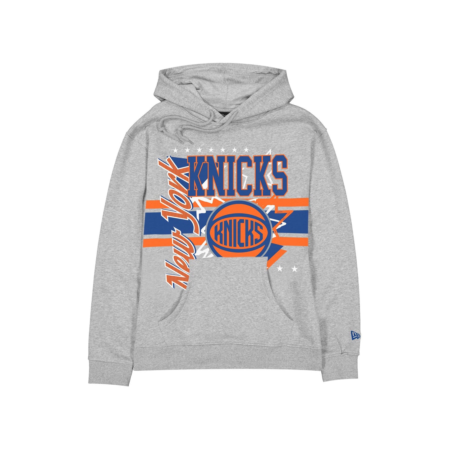 The New York Knicks Sport Classics Heather Gray Hoodie features a screen-printed Knicks graphic at the front with kangaroo pockets and adjustable drawstrings at the hood.