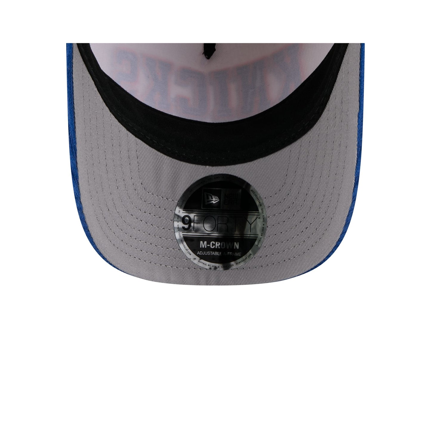 The New York Knicks Stacked Corduroy 9FORTY M-Crown A-Frame Snapback features an embroidered Knicks stacked wordmark at the front panels with a logo at the right-wear side. Additional details include a corduroy fabrication throughout, a snapback closure at the rear, and a gray undervisor.