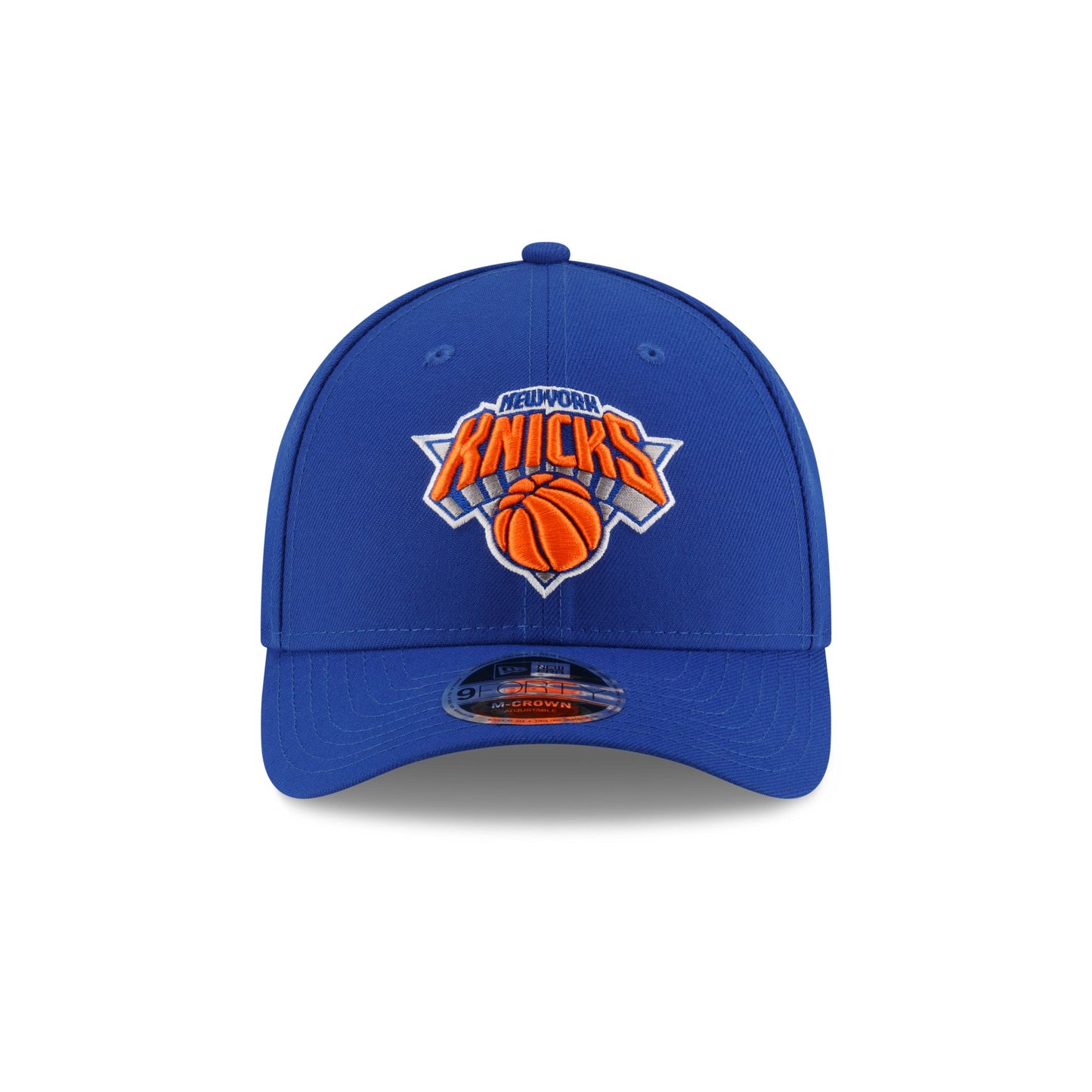 The New York Knicks Team 9FORTY M-Crown Snapback features an embroidered Knicks logo at the front panels with the NBA Logoman above an adjustable snapback closure at the rear and a gray undervisor.