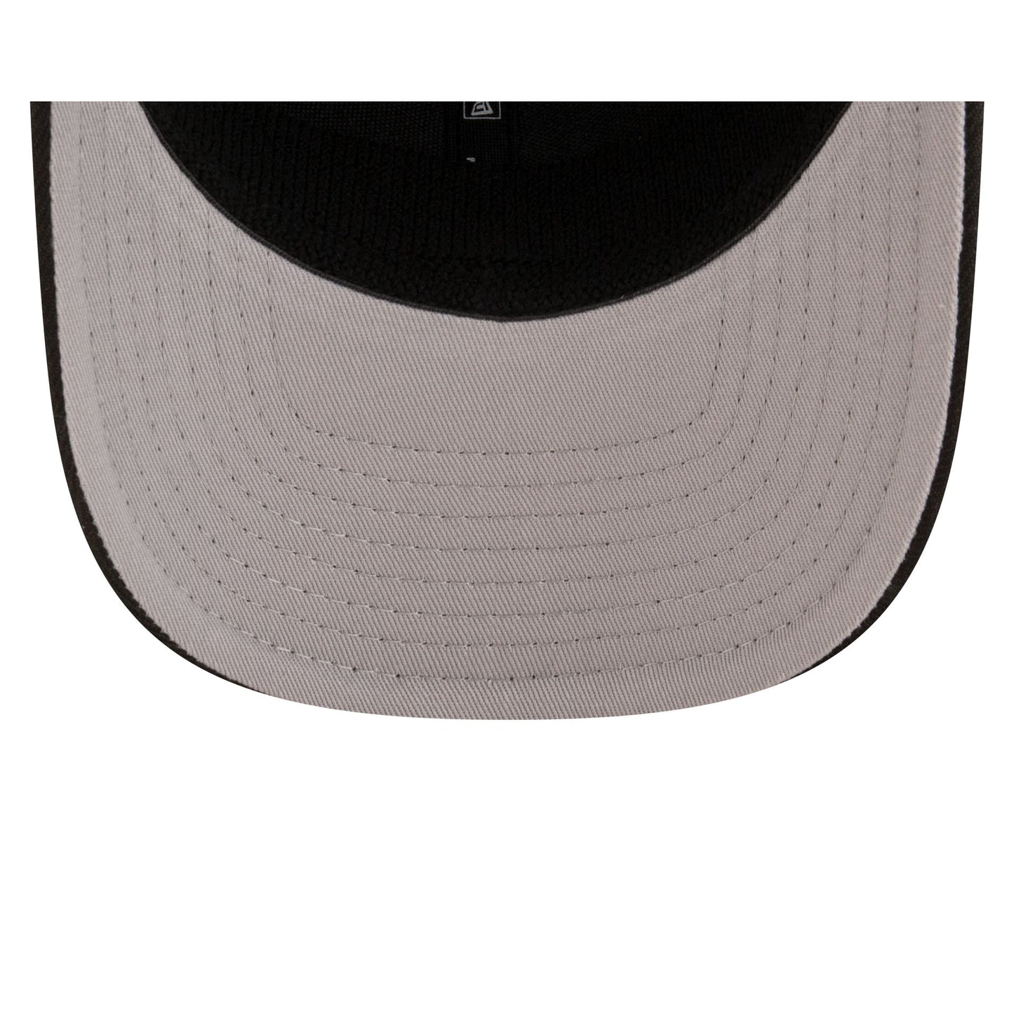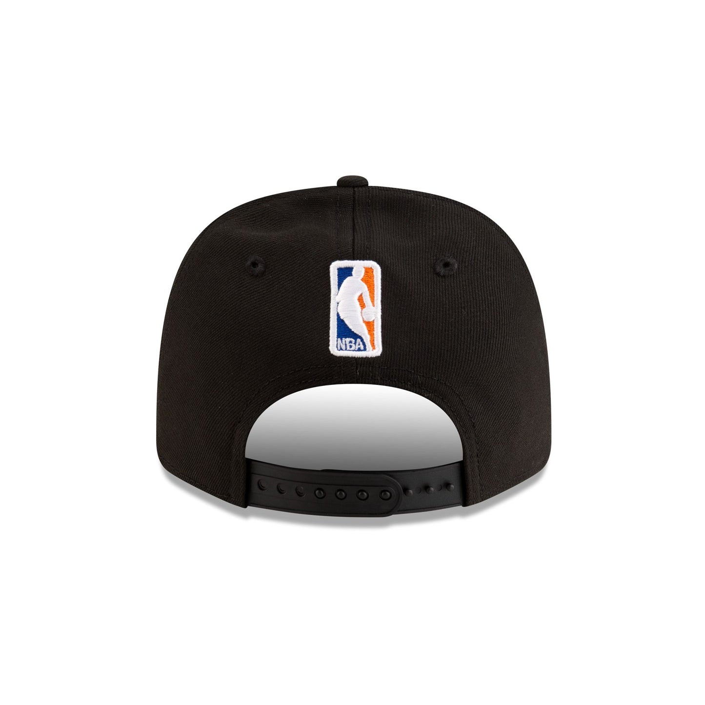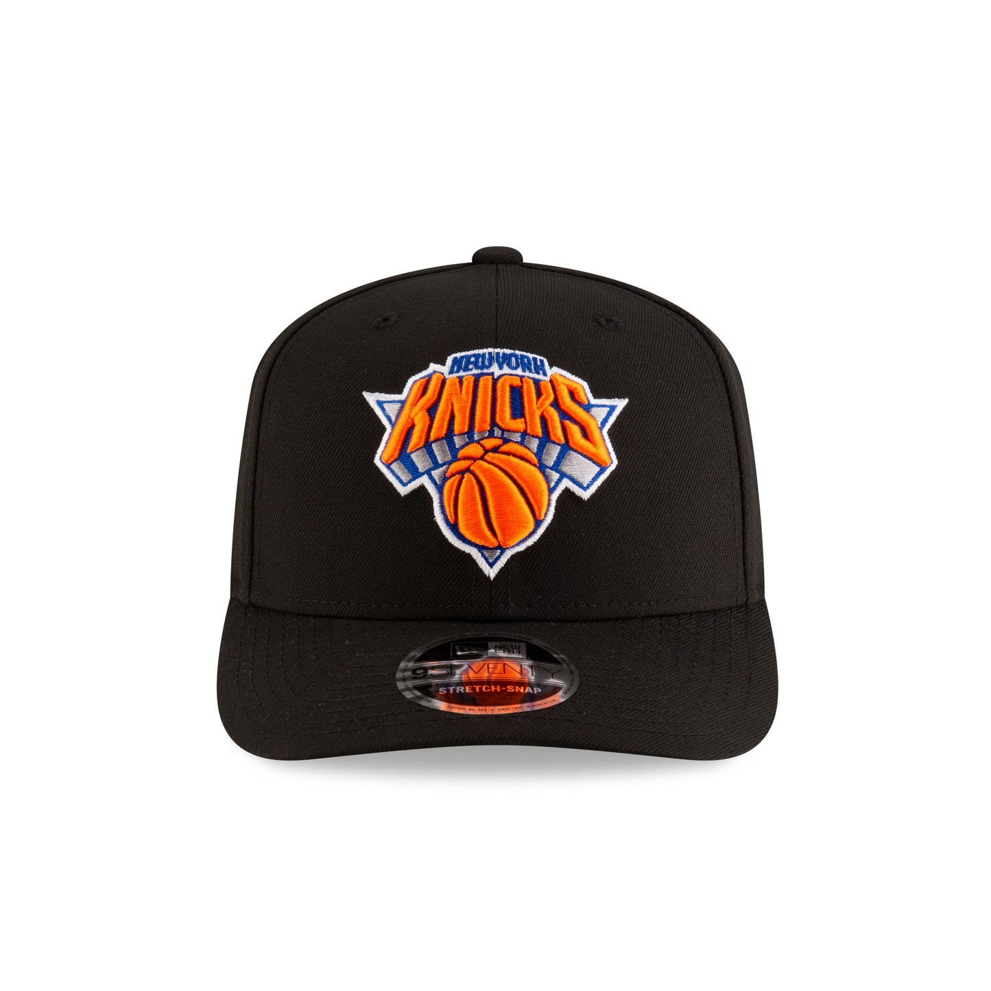 The New York Knicks Team Black 9SEVENTY Stretch-Snap features an embroidered Knicks logo at the front panels with the NBA Logoman above an adjustable stretch-snap closure at the rear and a gray undervisor.