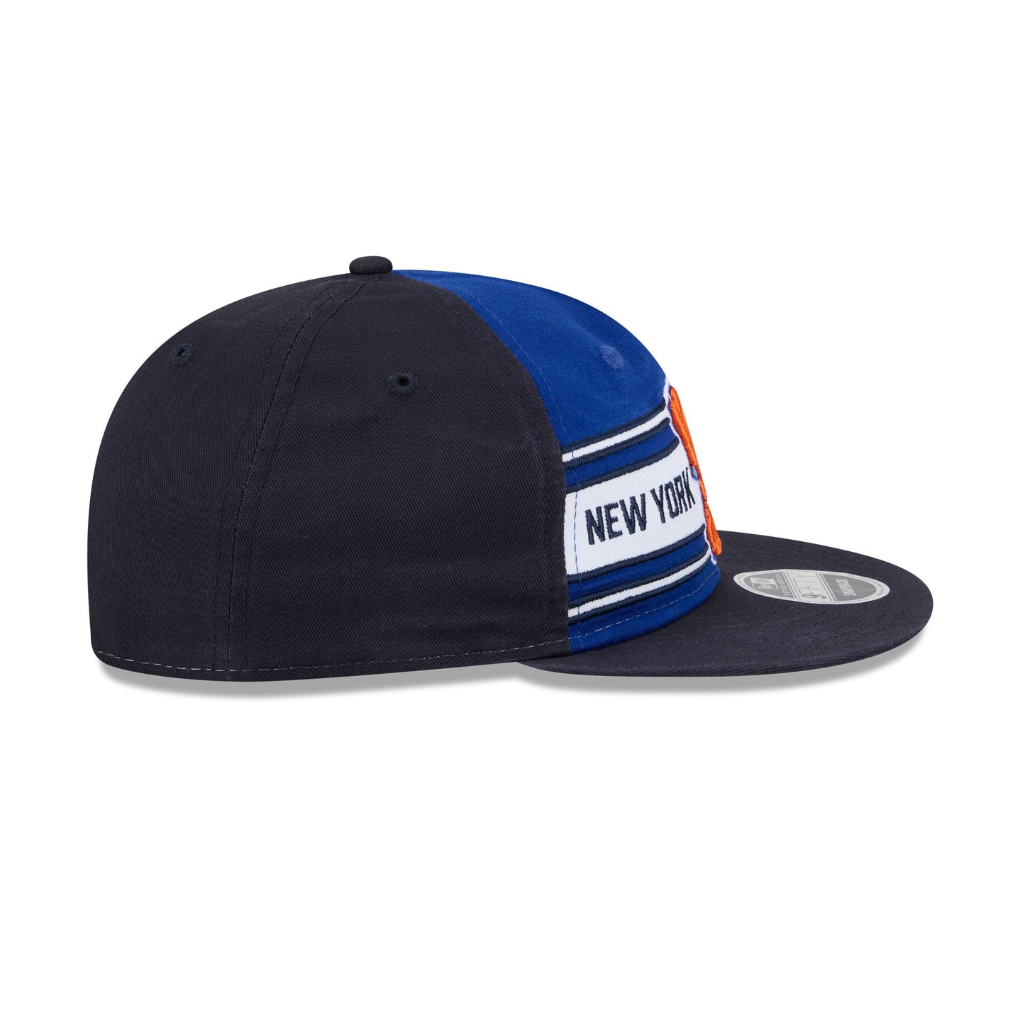 The New York Knicks Team Stripes Retro Crown 9FIFTY Snapback features an embroidered Knicks team stripe logo and wordmark at the front panels with an adjustable snapback closure at the rear.