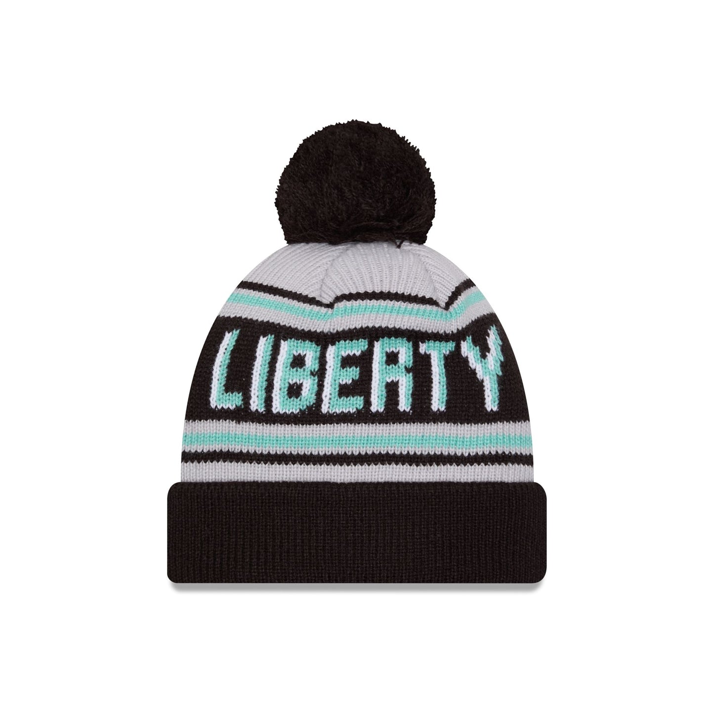 The New York Liberty 2024 Team Pom Knit features a Liberty logo at the brim with a team wordmark at the crown and a one-time removable pom.