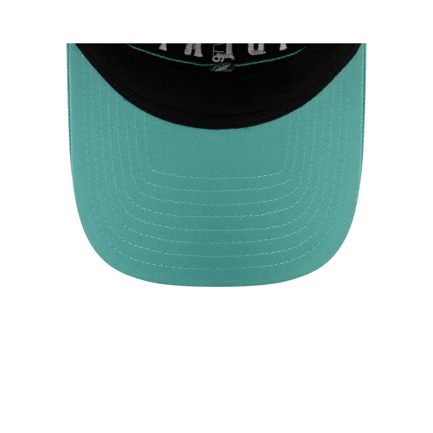 The New York Liberty 2025 Draft 9TWENTY Adjustable Cap features an embroidered Liberty logo and wordmark at the front panels with a WNBA Logowoman above an adjustable D-Ring closure at the rear.
