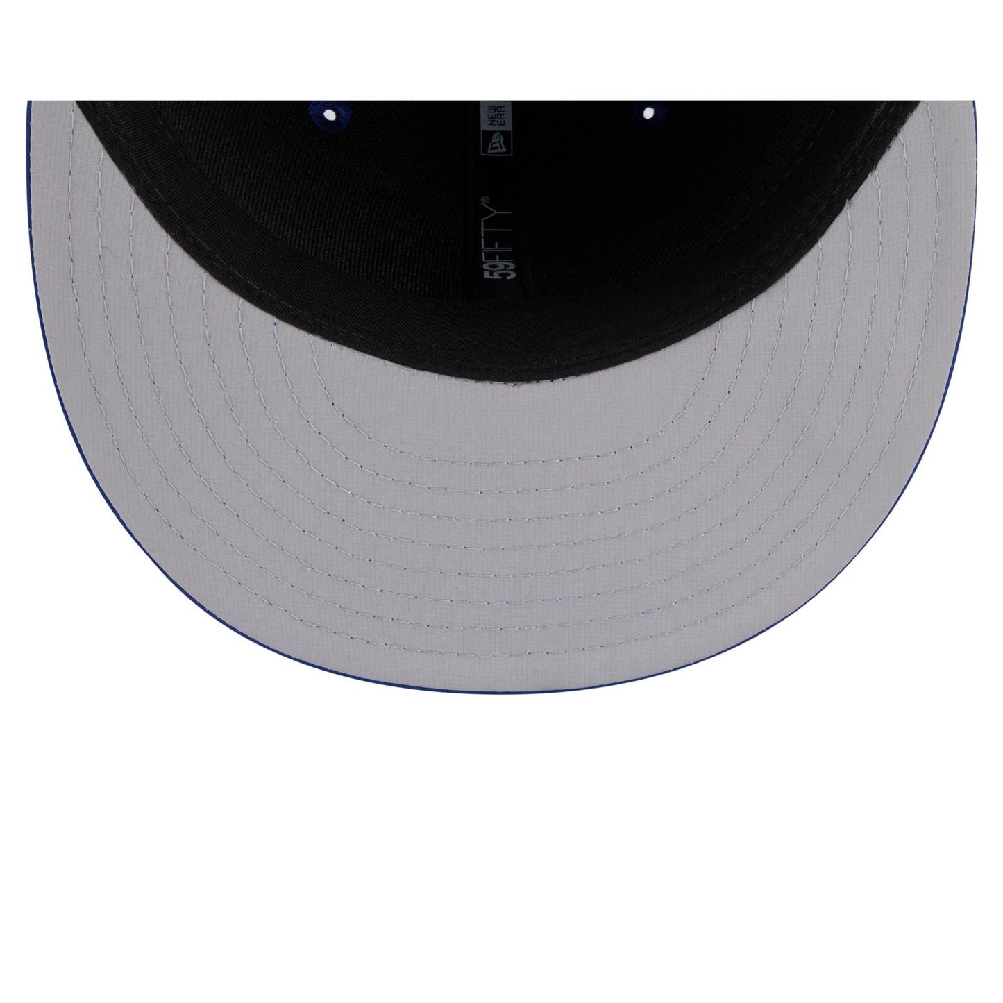 The New York Mets 2026 Clubhouse 59FIFTY Fitted Cap features a sewn-down silicone Mets logo patch at the front panels with a water-repellent quill tech fabrication throughout. Additional details include a silicone MLB Batterman logo patch at the rear and a gray undervisor. The visor is accented with a silicone transfer team patch.