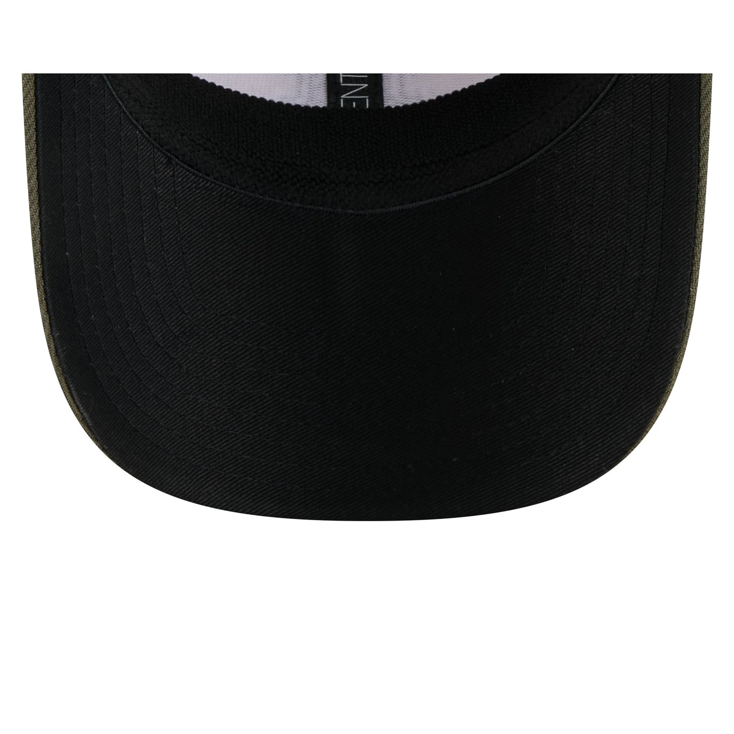 The New York Mets Armed Forces Day 2025 9SEVENTY Trucker features an embroidered Mets logo at the front panels with the American Flag embroidered at the right-wear side. Additional details include an MLB Batterman logo above a stretch-snap mesh closure at the rear and a black undervisor.