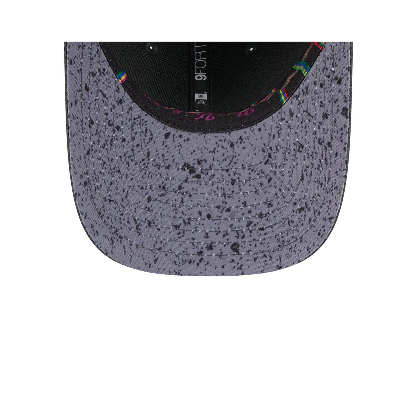 The New York Mets City Connect 9FORTY M-Crown Snapback features an embroidered Mets logo at the front panels with an MLB Batterman logo above a snapback closure at the rear and a gray undervisor.