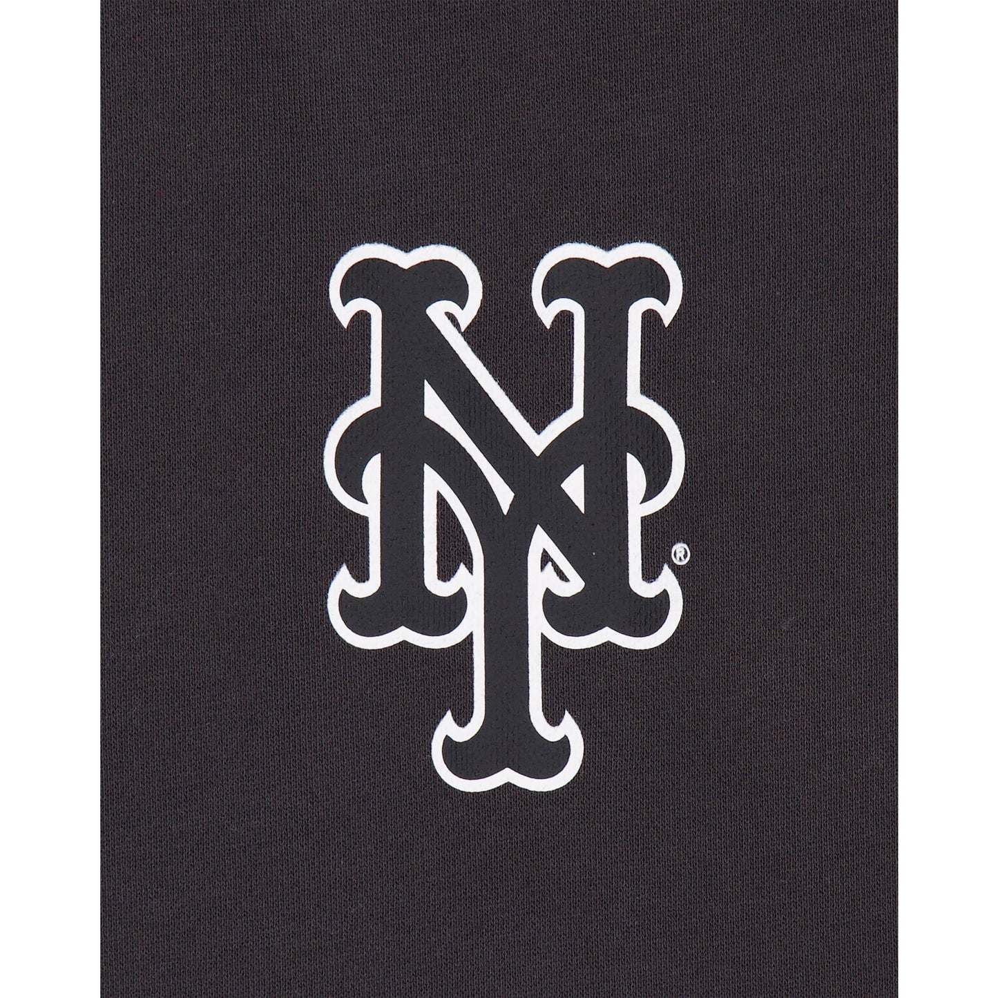 The New York Mets City Connect Black Hoodie features a screen-printed Mets wordmark at the front with a team logo at the left sleeve.