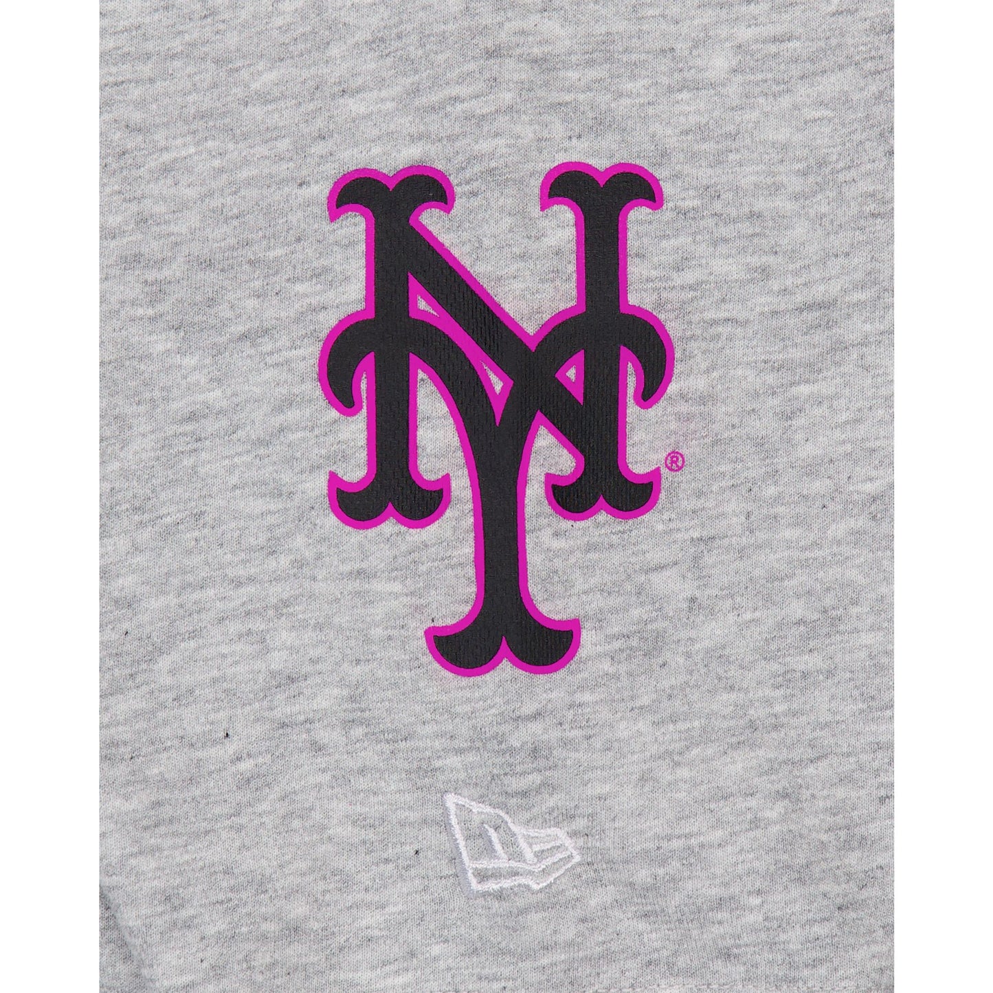 The New York Mets City Connect Gray T-Shirt features a screen-printed Mets logo at the front with an alternate team logo at the left-wear sleeve.