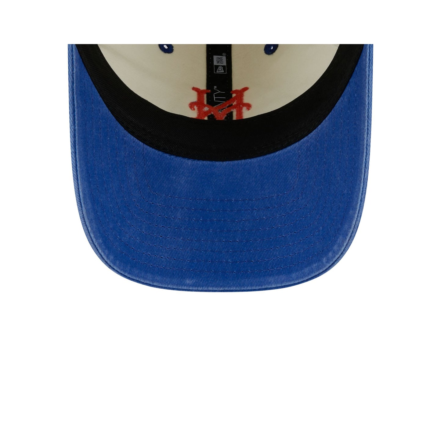 The New York Mets Classic Sidescript 9TWENTY Adjustable Cap features an embroidered Mets logo at the front panels with a matching team wordmark at the right-wear side. Additional details include eyelets throughout the cap and an adjustable D-Ring closure at the rear.