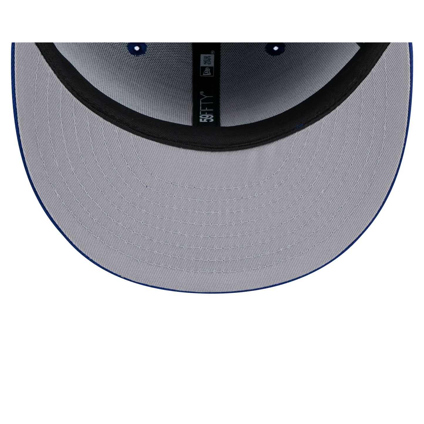 The New York Mets Color Pattern 59FIFTY Fitted Cap features an embroidered Mets logo at the front panels against a floral patterning throughout. Additional details include a matching MLB Batterman logo at the rear and a gray undervisor.