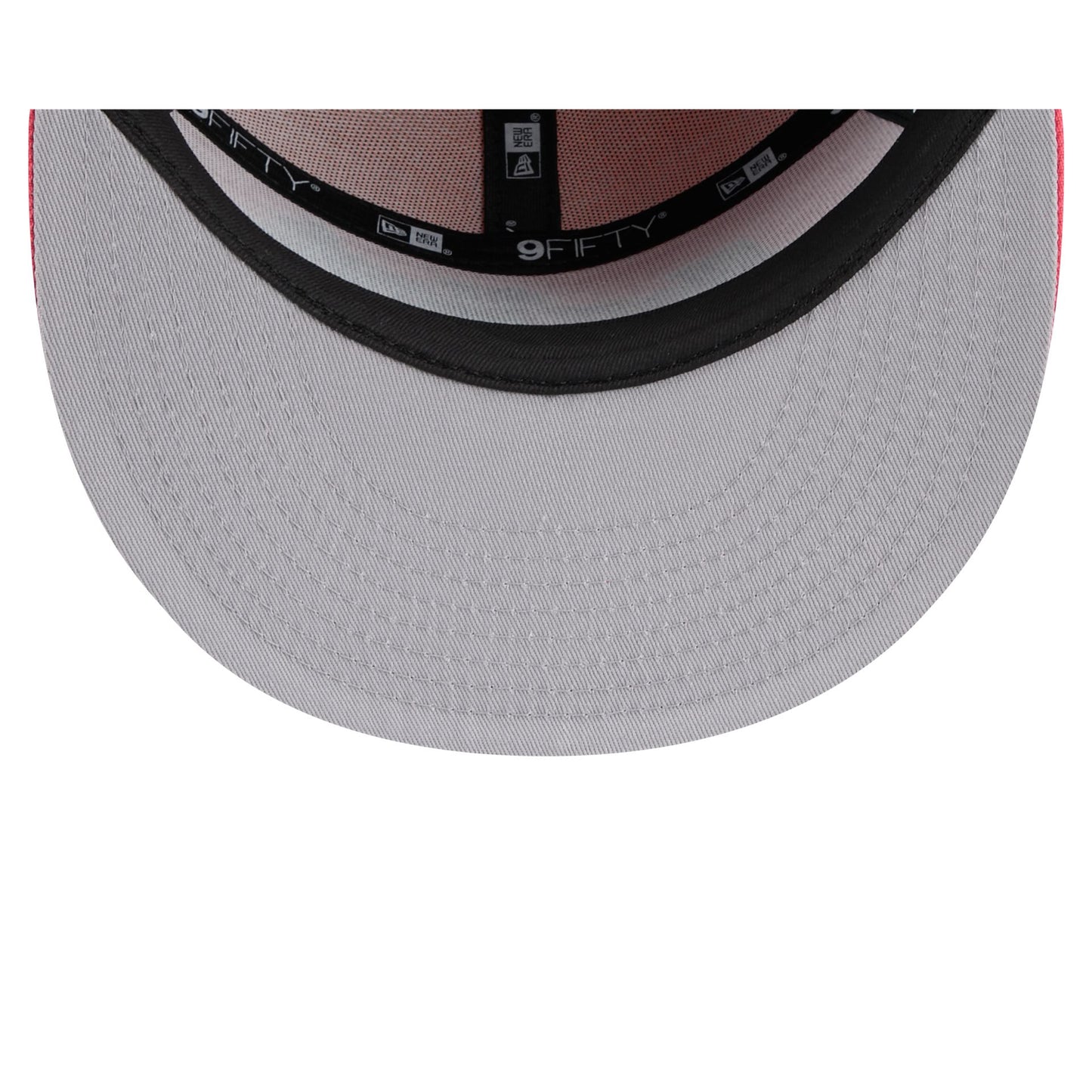 The New York Mets Coral 9FIFTY Split Panel Snapback features an embroidered Mets Cooperstown wordmark at the front panels with a snapback closure at the rear, a multicolored crown, and a gray undervisor.