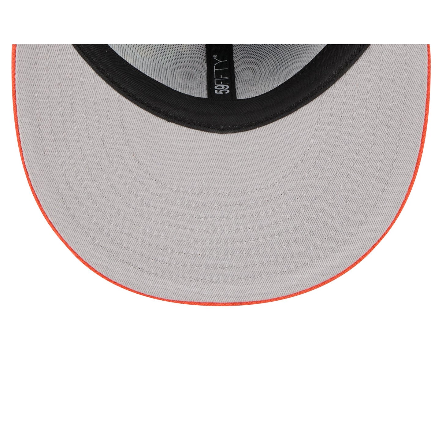 The New York Mets Diamond Hero Edition 59FIFTY Fitted Cap features an embroidered Mets onomatopoeia pop logo at the front panels with baseball comic book prints at the front and back panel. Additional details include the MLB Batterman logo at the rear and a gray undervisor.
