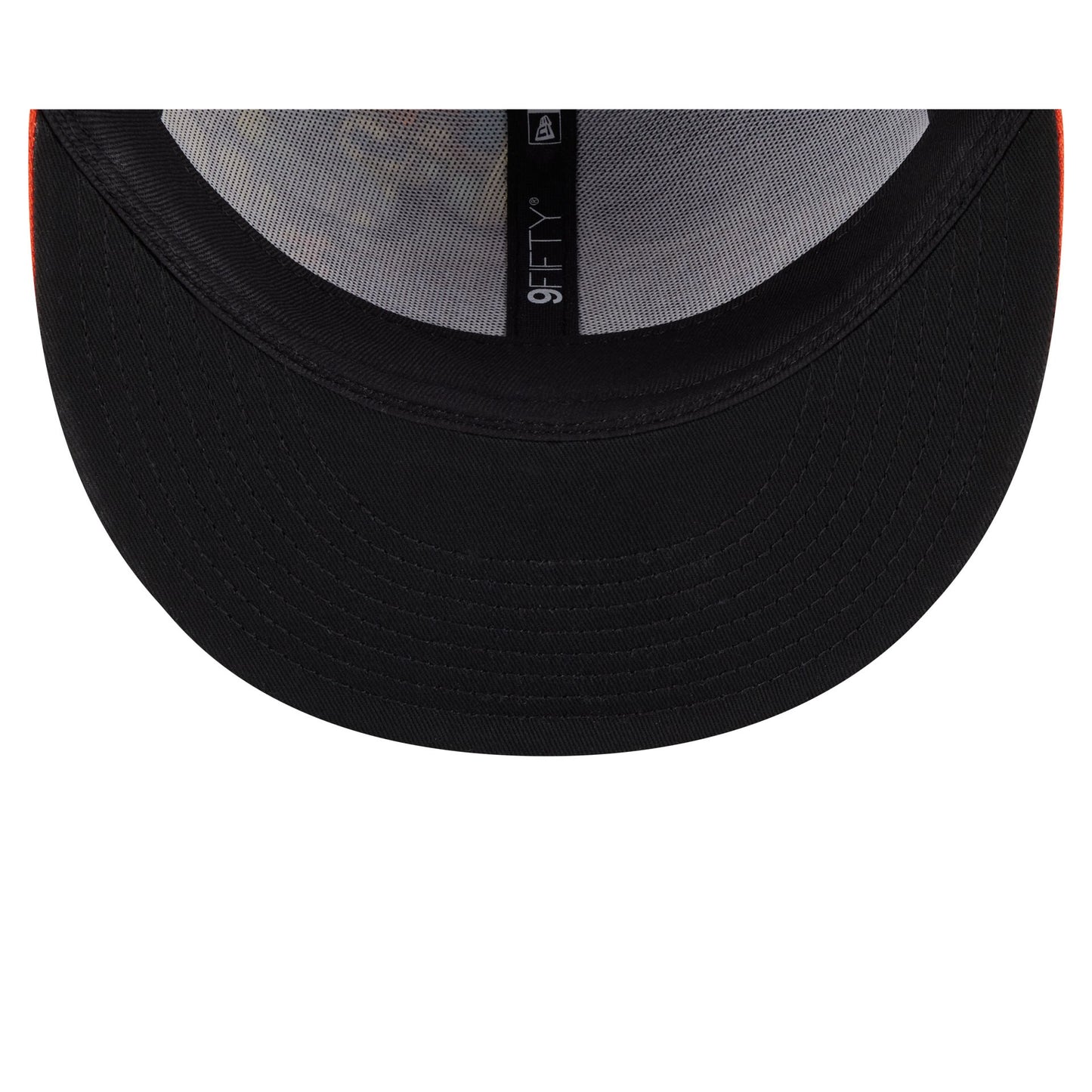 The New York Mets Diamond Hero Edition 9FIFTY Snapback features an embroidered Mets onomatopoeia pop wordmark at the front panels with baseball comic book prints at the front and back panel. Additional details include a ZOOM! wordmark at the left-wear side, the MLB Batterman logo above a snapback closure at the rear, and a gray undervisor.