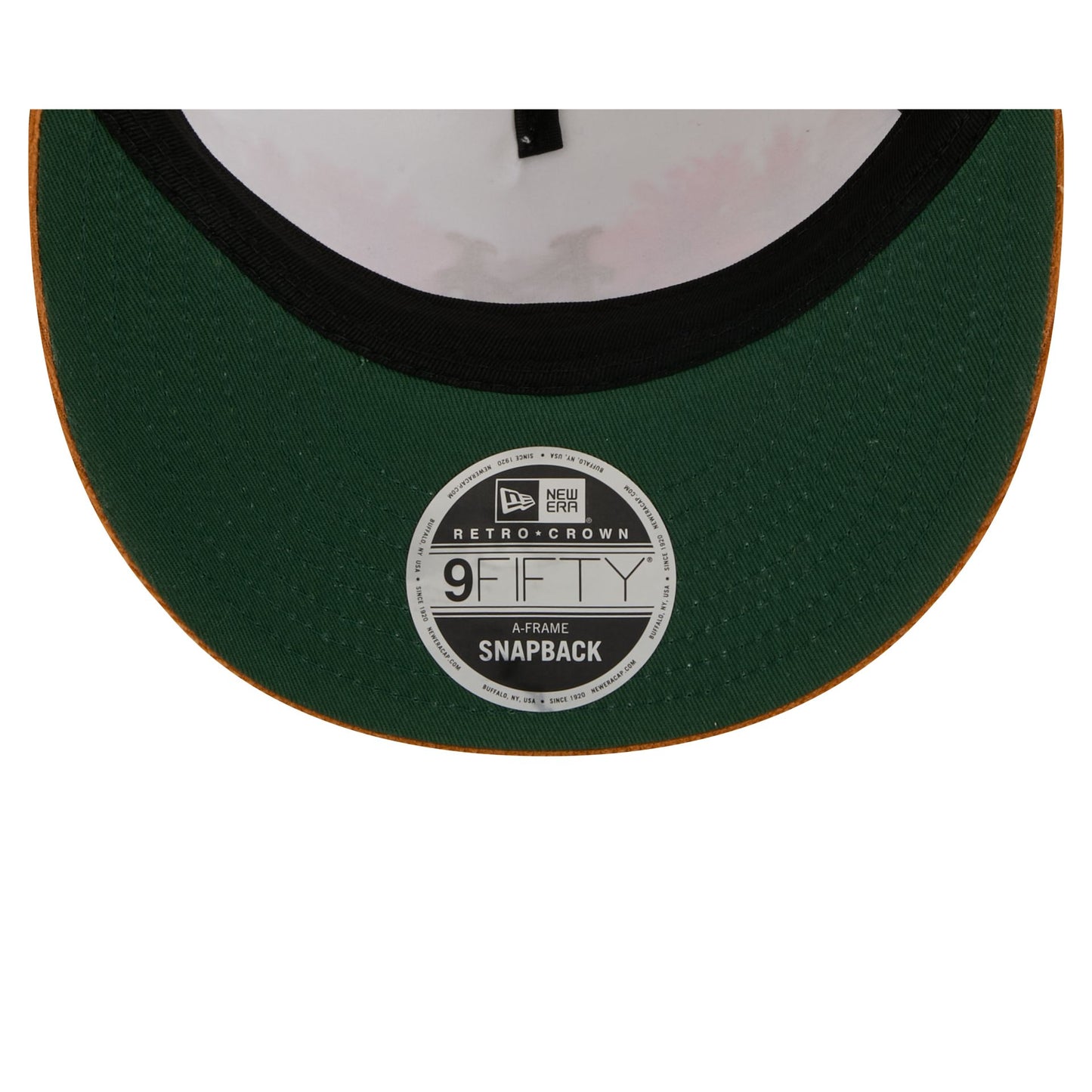 The New York Mets Fall Forest Retro Crown 9FIFTY Adjustable Cap features an embroidered Mets wool yarn logo at the front panels against an image of a fall forest throughout the cap. Additional details include a corduroy visor and an adjustable buckle closure at the rear.