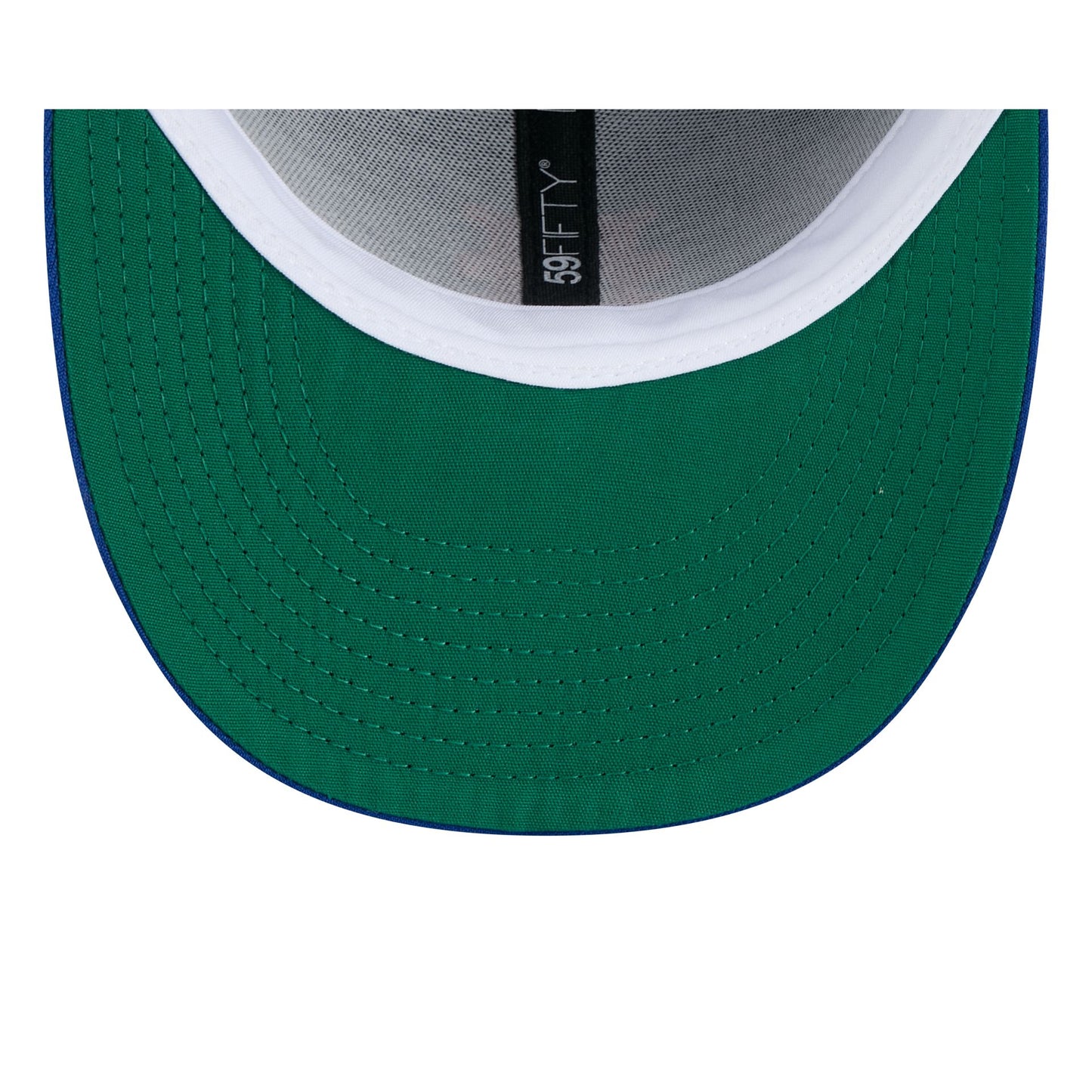 The New York Mets Hall of Fame 2025 Low Profile 59FIFTY Fitted Cap features an embroidered Mets Cooperstown logo at the front panels with a matching MLB Batterman logo at the rear, a National Baseball Hall of Fame patch at the right-wear side, and a green undervisor.