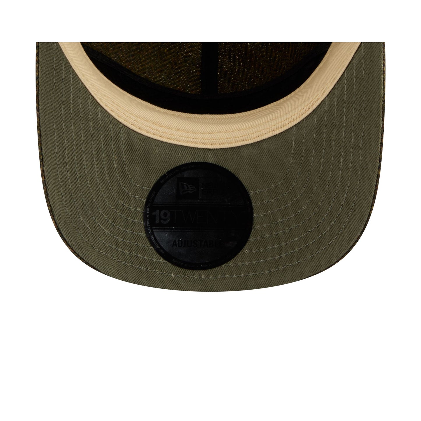 The New York Mets Olive Merino Lambswool Moon 19TWENTY Adjustable Cap features an embroidered Mets Cooperstown logo at the front panels with a Merino Lambswool fabrication throughout and a satin Moon tag woven to the right-wear side. Additional details include an adjustable metal clasp closure at the rear and a dark olive green undervisor.