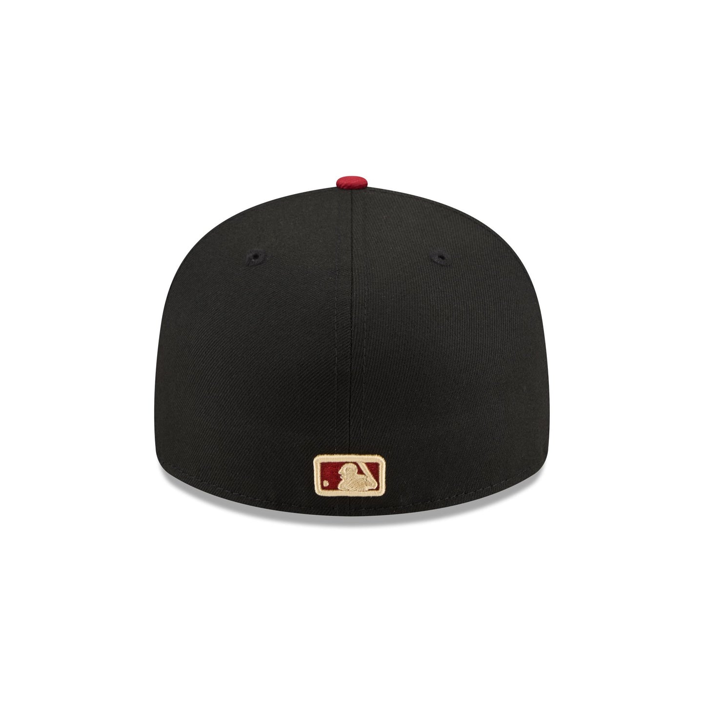 The New York Mets Team Cards 59FIFTY Fitted Cap features an embroidered Mets logo at the front panels with a team card patch with heart at the right-wear side. Additional details include the MLB Batterman logo at the rear and a green undervisor.