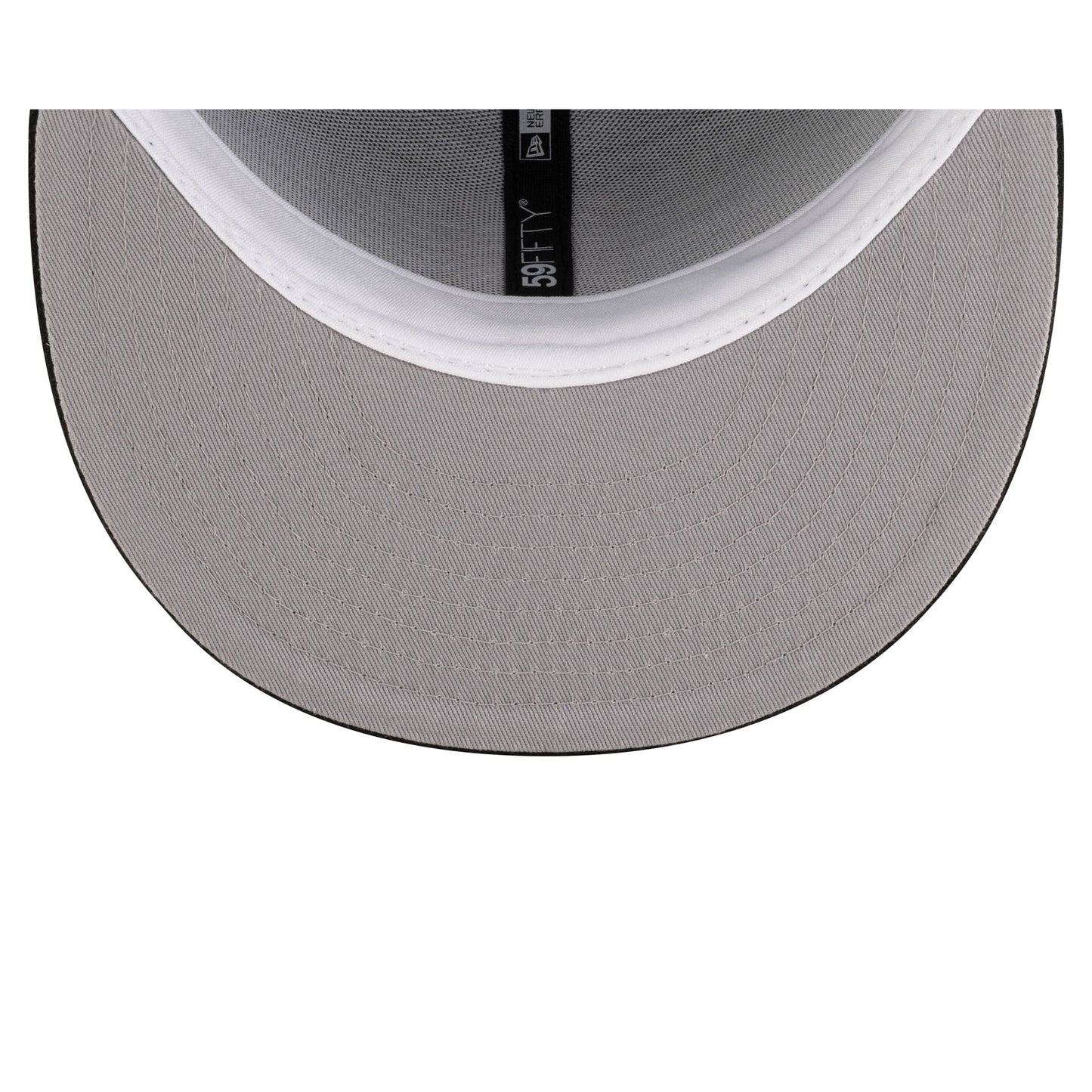 The New York Mets Visor Clip 59FIFTY Fitted Cap features an embroidered Mets logo at the front panels with a matching New Era visor clip and a MLB Batterman logo at the rear. Additional details include a 25th Anniversary patch at the right-wear side and a gray undervisor.