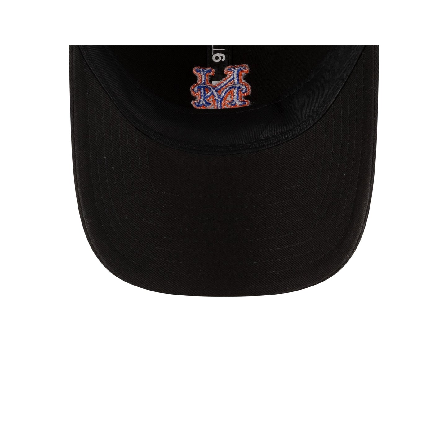 The New York or Nowhere x New York Mets Black 9TWENTY Adjustable Cap features an embroidered Mets logo at the front panels with a New York or Nowhere wordmark at the right-wear side and an adjustable metal clasp closure at the rear.